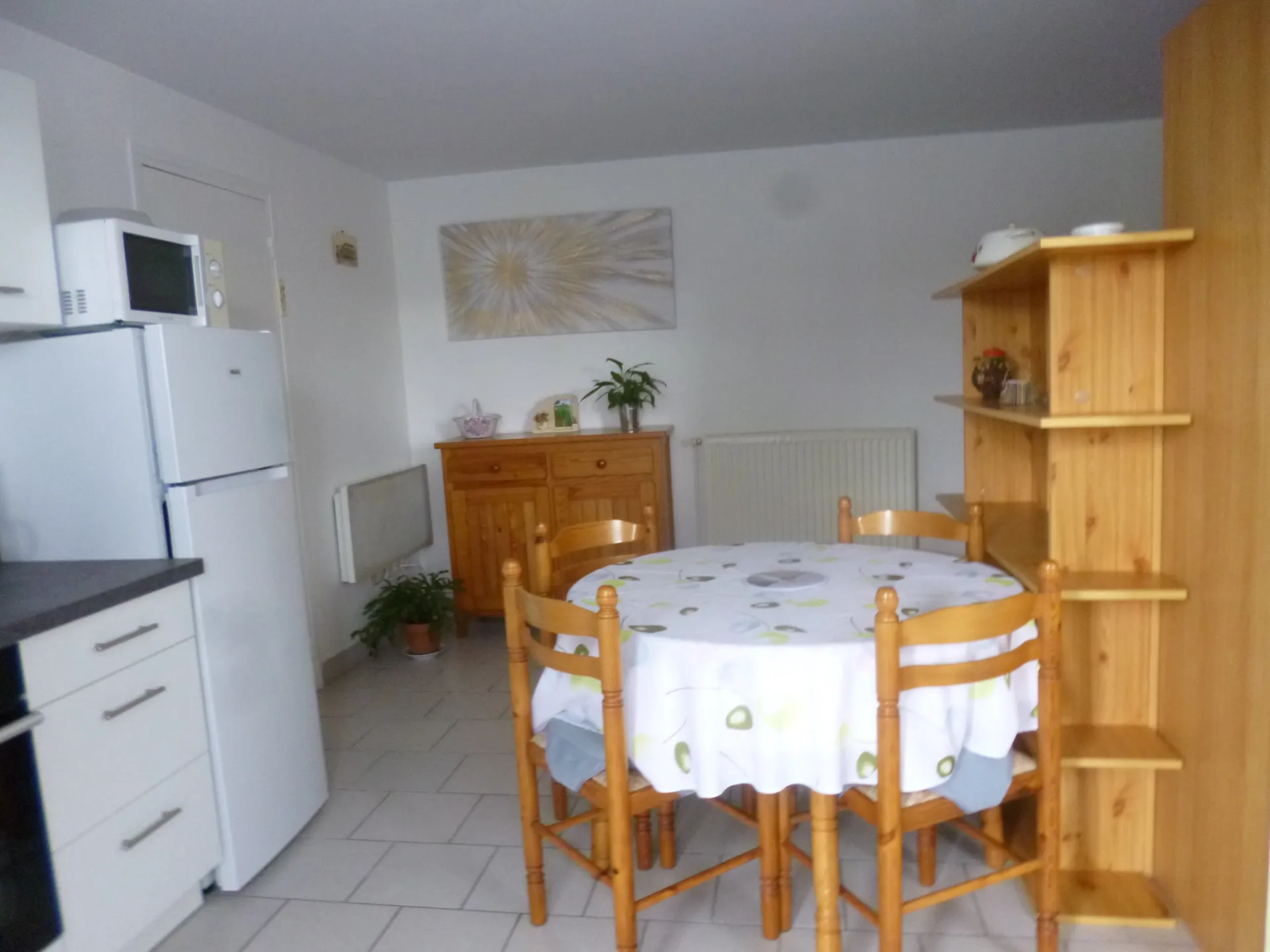 Le séjour avec coin salon (télévision, 2 fauteuils confortables). Couchage dans la même pièce avec un lit 140.