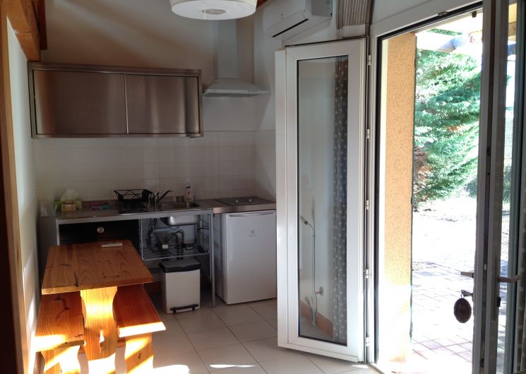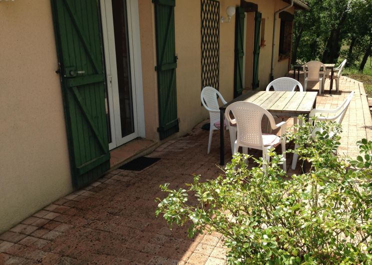 Une terrasse accessible depuis la pièce à vivre. Accès piscine (en saison), climatisation, wifi et stationnement gratuit.