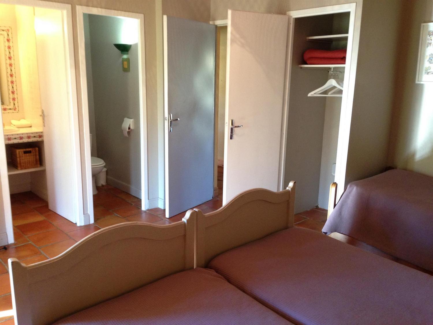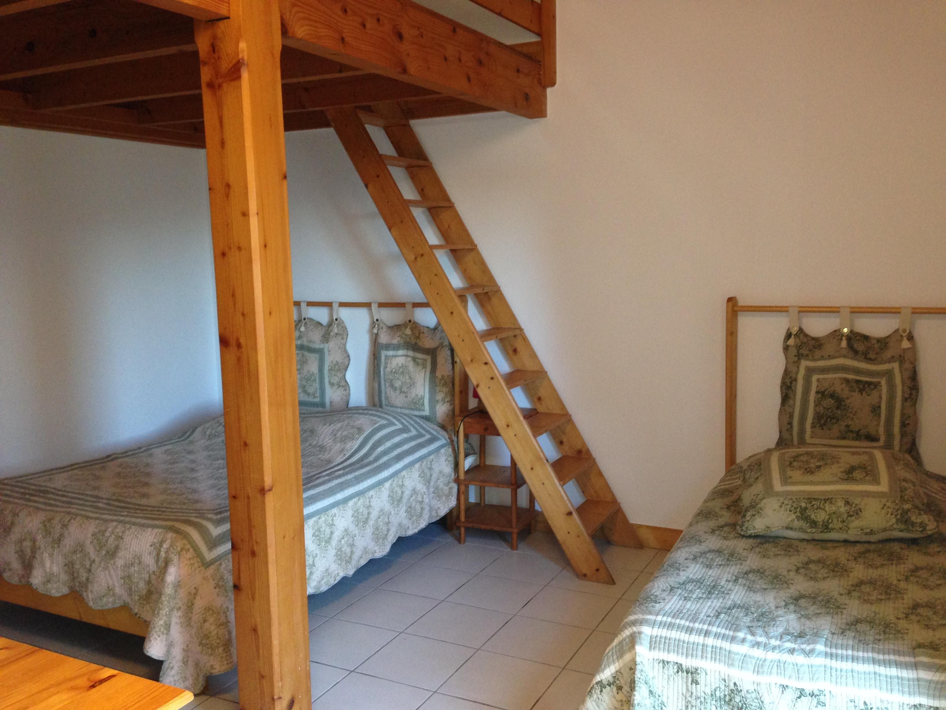 Les Oiseaux : studio de 23m2 en rez-de-chaussée sur une propriété de 2 hectares avec une vue dégagée sur la campagne Gersoise composé d’un lit double et un lit simple, cuisinette avec table et 2 bancs, salle de bains avec douche; et une mezzanine avec 2 lits simples.