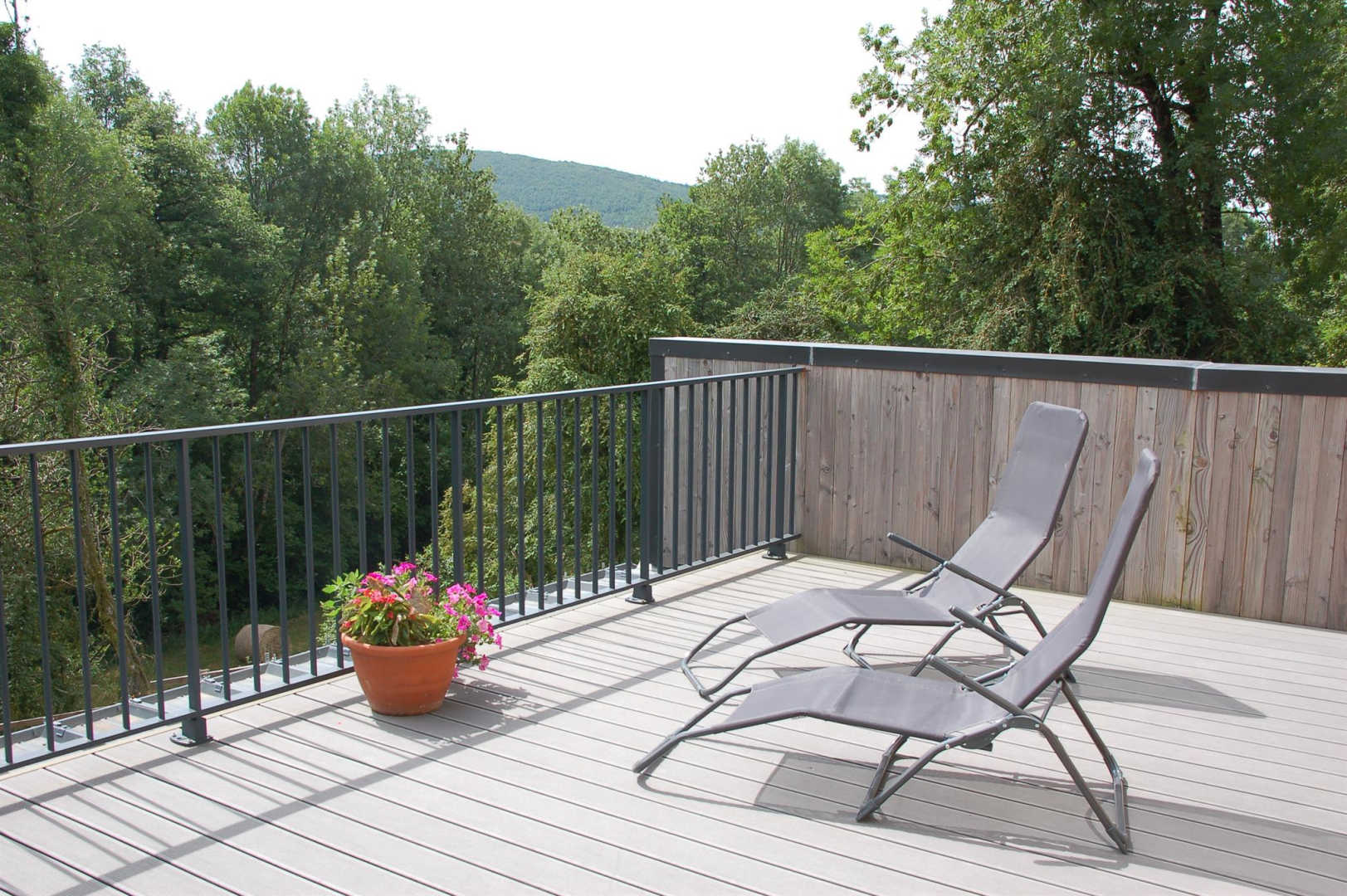 A l’étage, deux chambres, salle d’eau, wc séparé. Terrasse suspendue. Chauffage (inclus dans le prix ) par un poêle à granulés, poêle à bois, complémenté avec radiateurs électriques.
