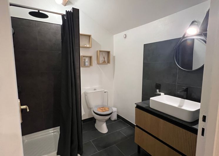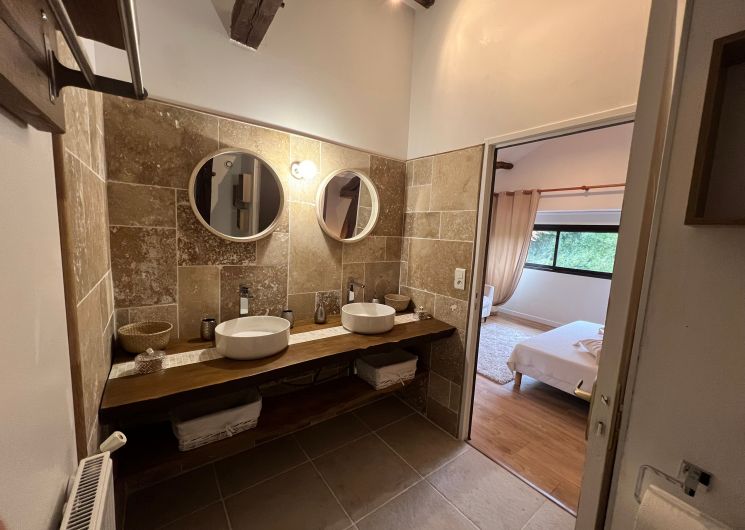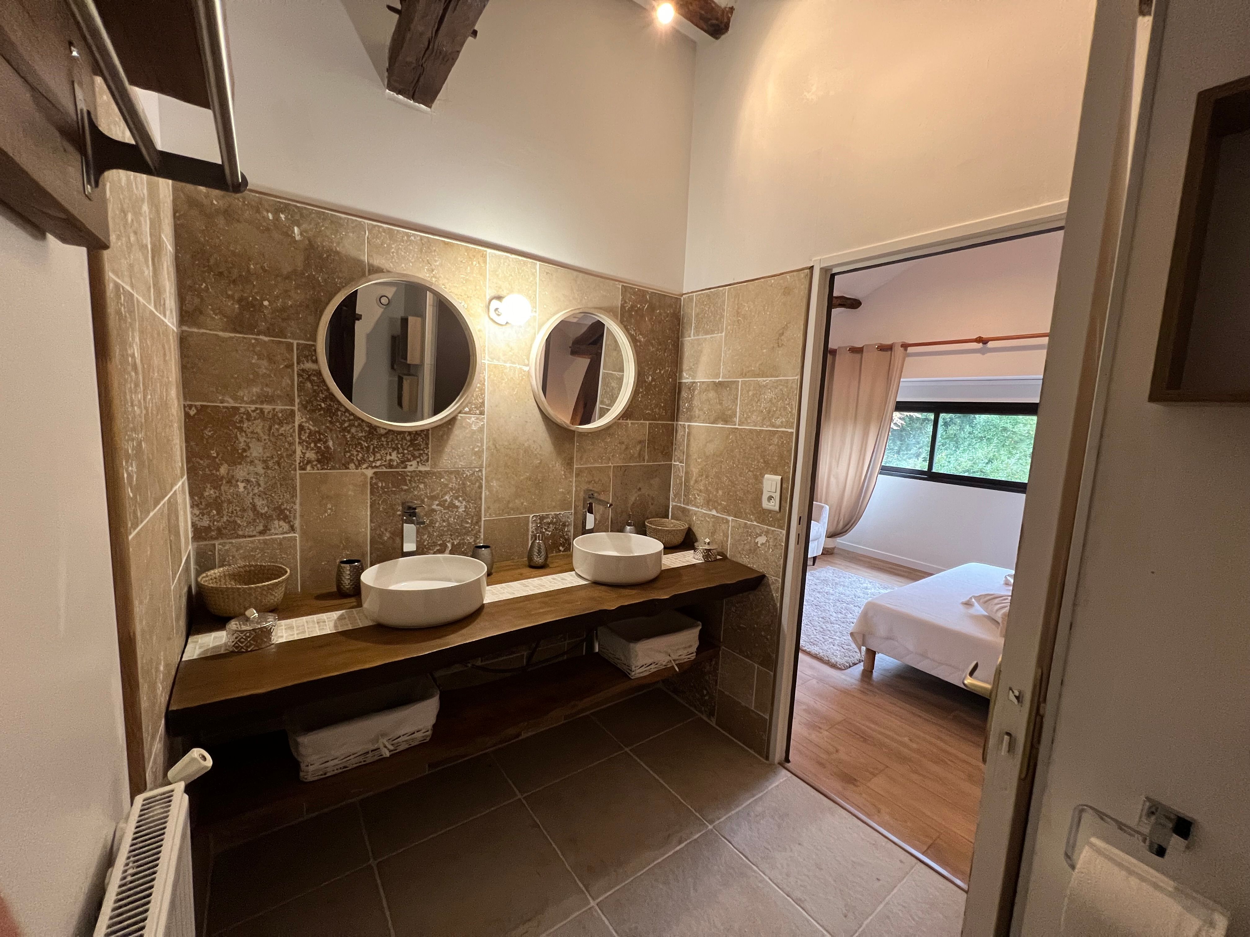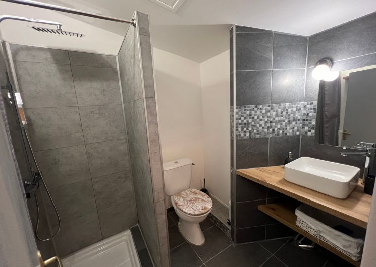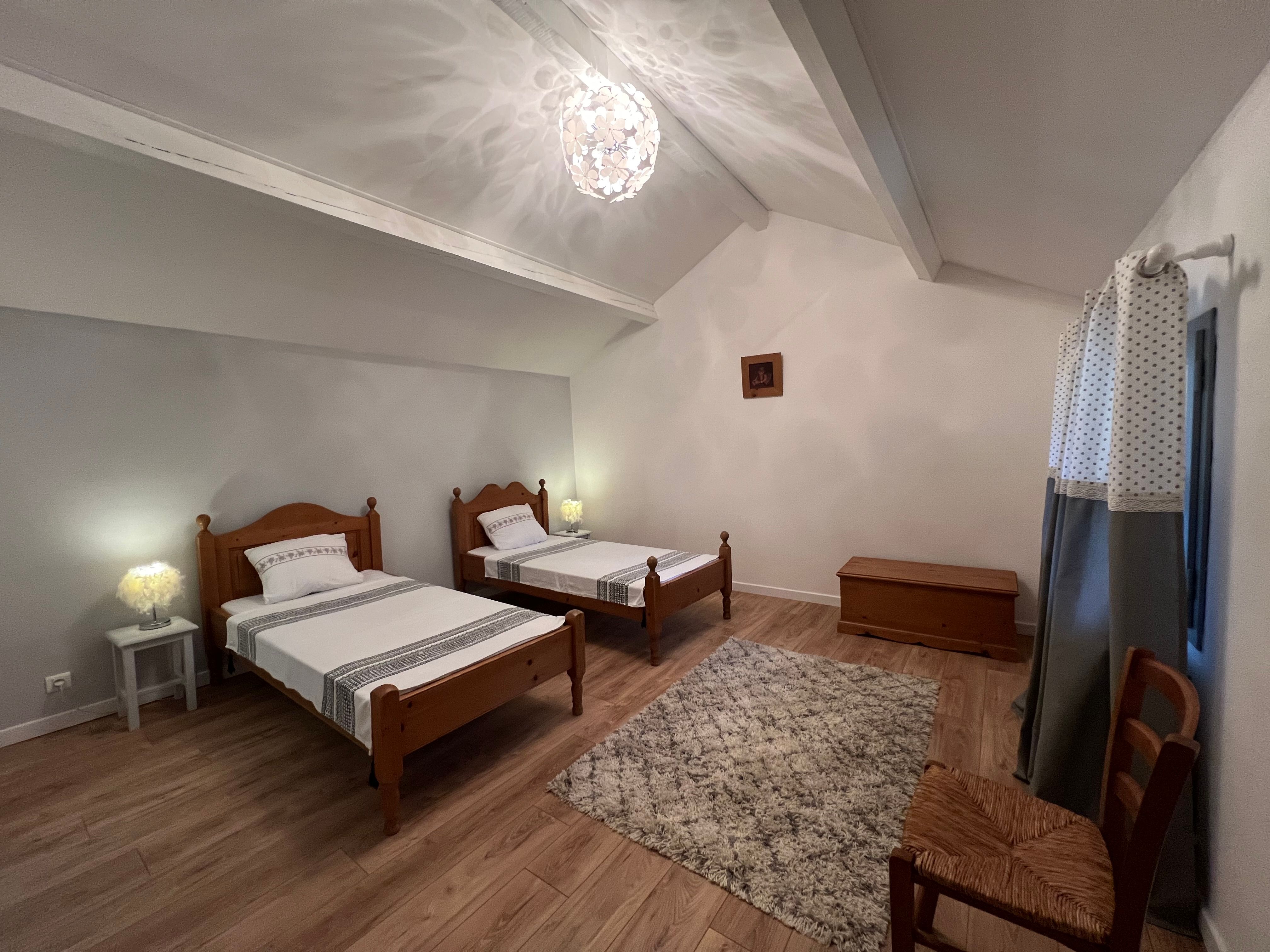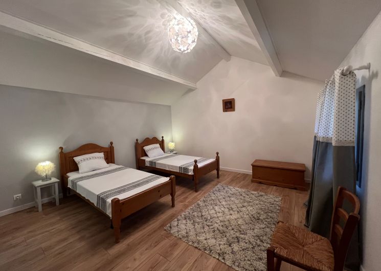 Séjour avec cuisine ouverte, chambre 1 avec 1 li 160, salle d’eau et wc privatifs. A l’étage, 3 chambres avec salle d’eau/wc privatifs chacune, 1 lit 160 dans la chambre 2 et 3 et 2 lits 90 dans la chambre 4.