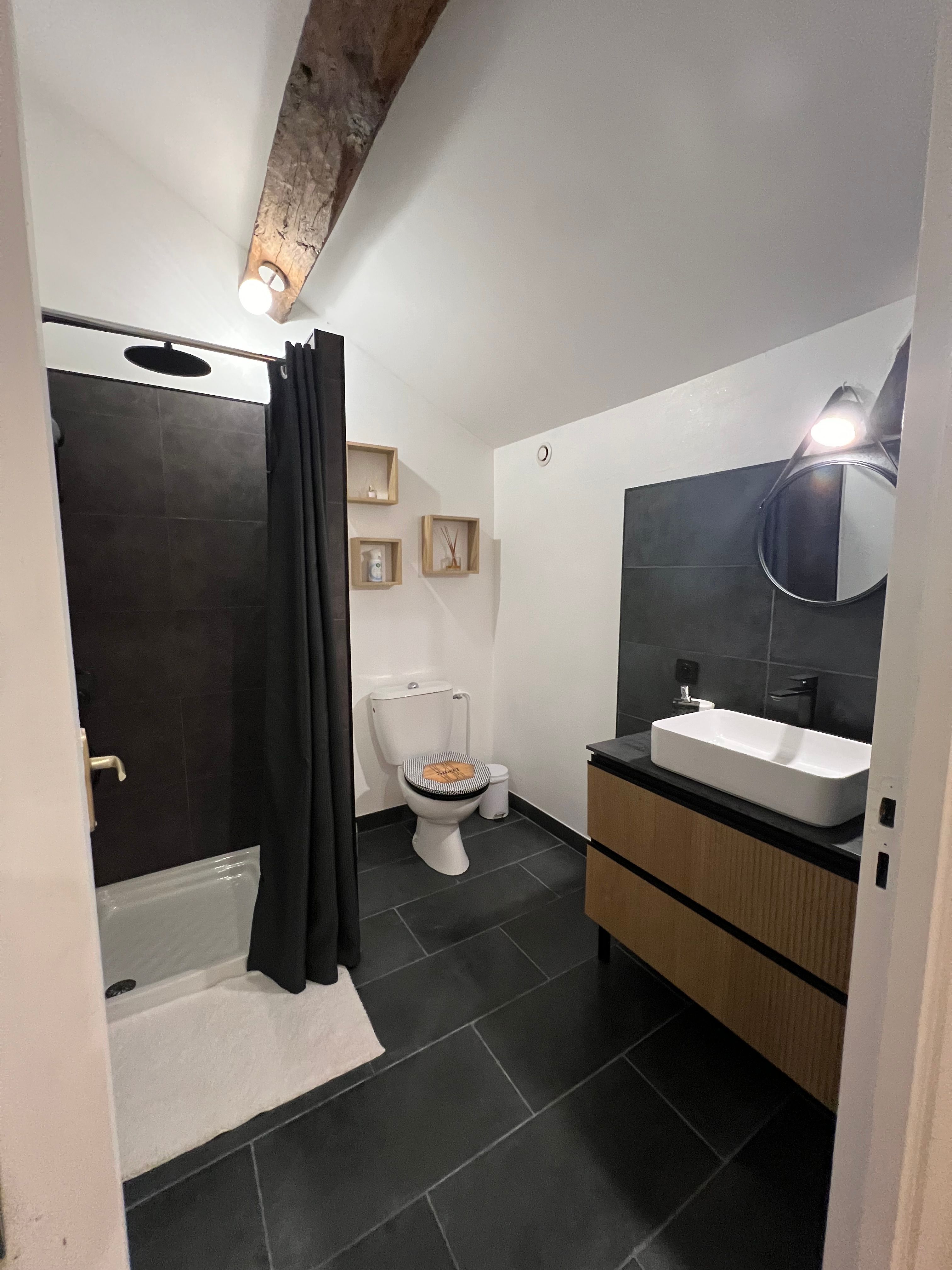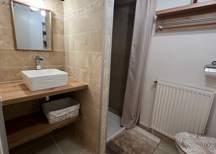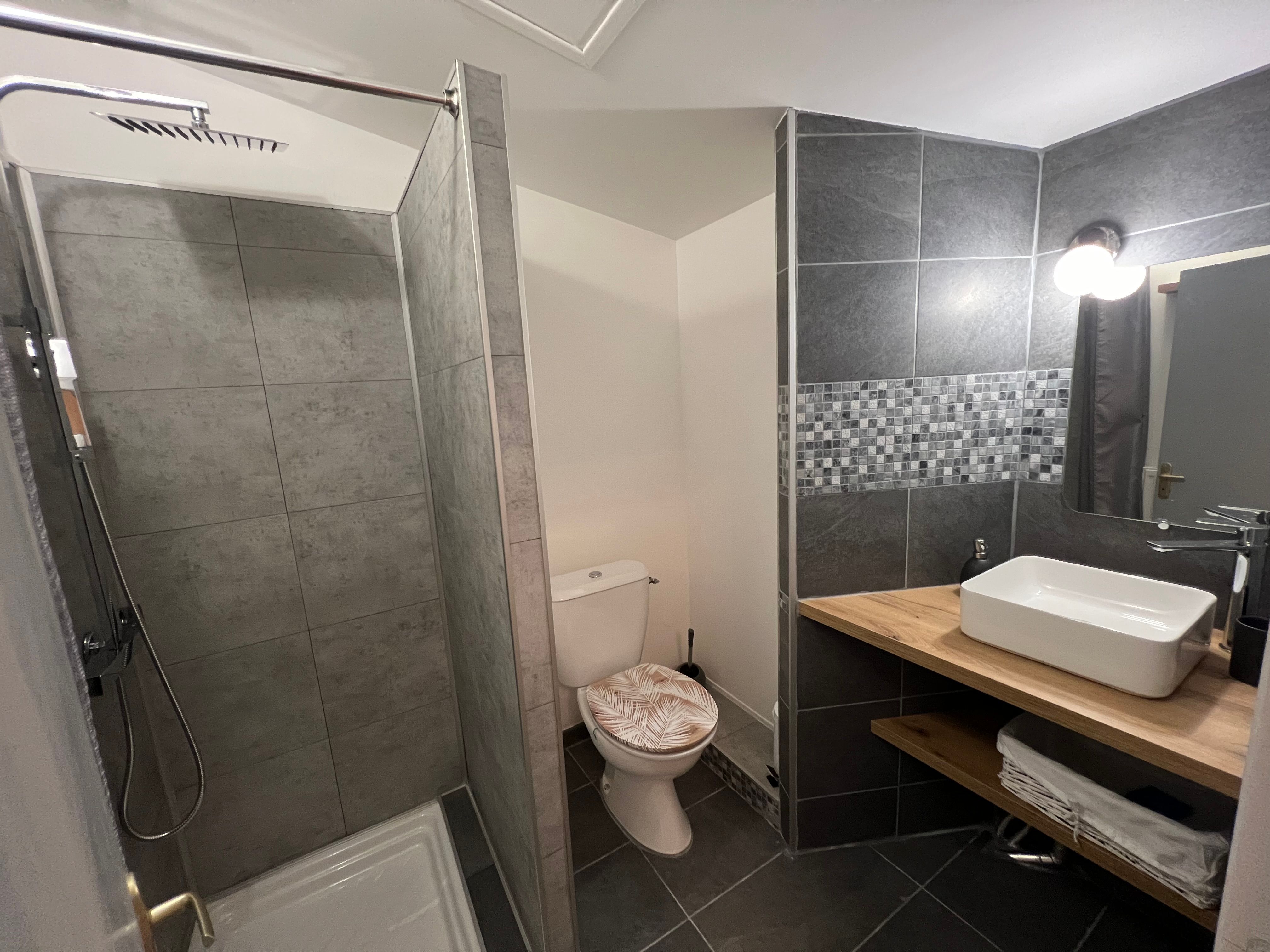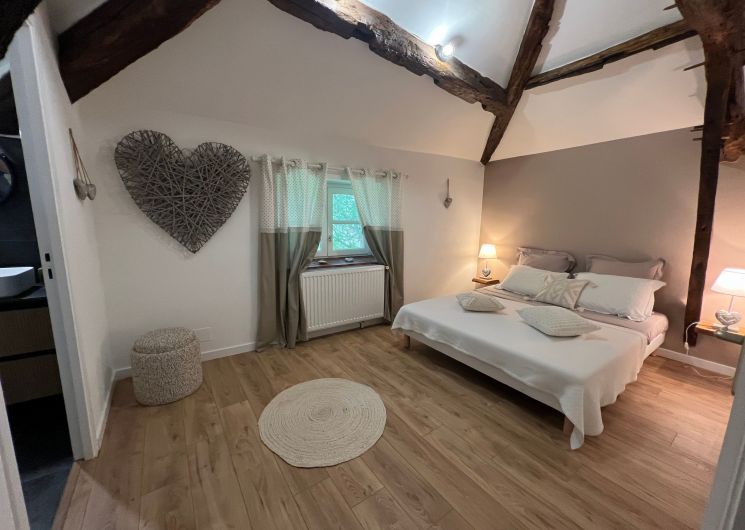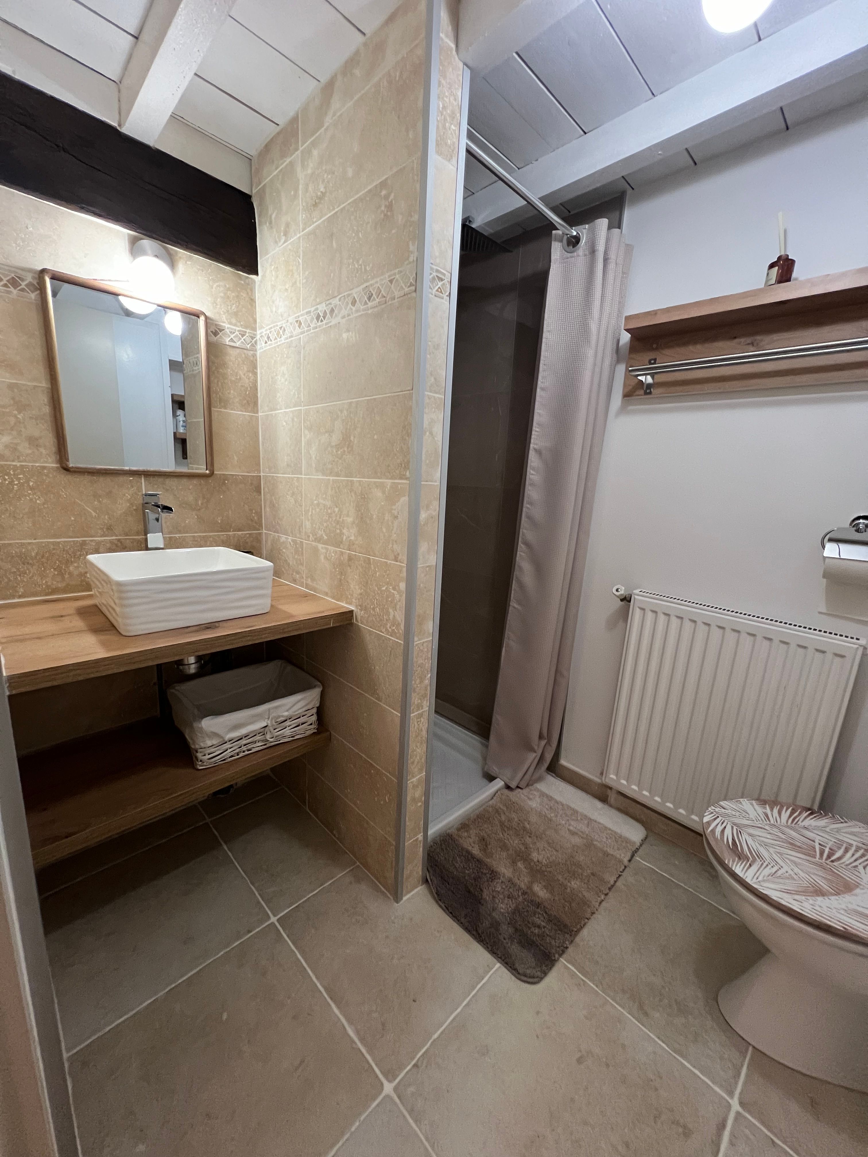 Séjour avec cuisine ouverte, chambre 1 avec 1 li 160, salle d’eau et wc privatifs. A l’étage, 3 chambres avec salle d’eau/wc privatifs chacune, 1 lit 160 dans la chambre 2 et 3 et 2 lits 90 dans la chambre 4.