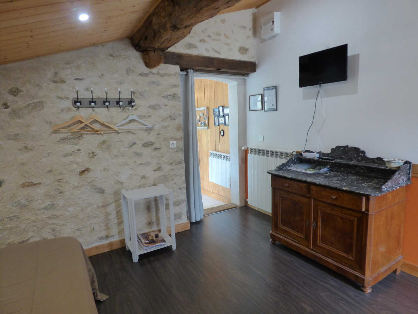 Une chambre d’hôtes pour deux personnes, aménagé dans un ancien grenier de la ferme. Accès indépendant depuis le jardin, vous entrez d’abord par une véranda ensoleillée dotée d’une kitchenette. La chambre accueille un lit double 160x200cm, chaleureuse et boisée. Salle d’eau privative.