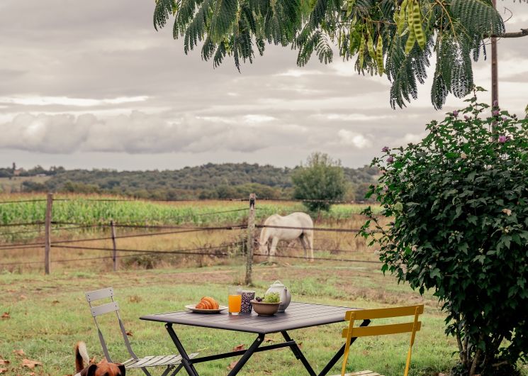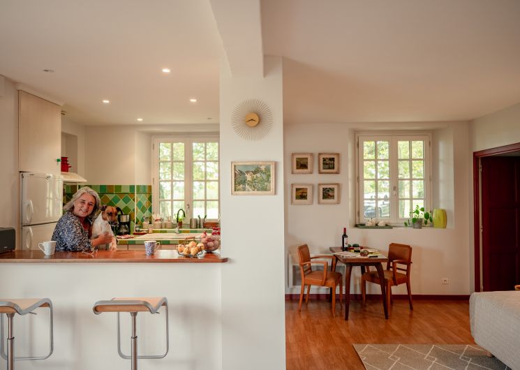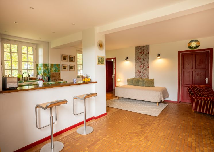 Appartement de plain-pied de 65 m², lumineux et ouvert sur la campagne et les chevaux du domaine.