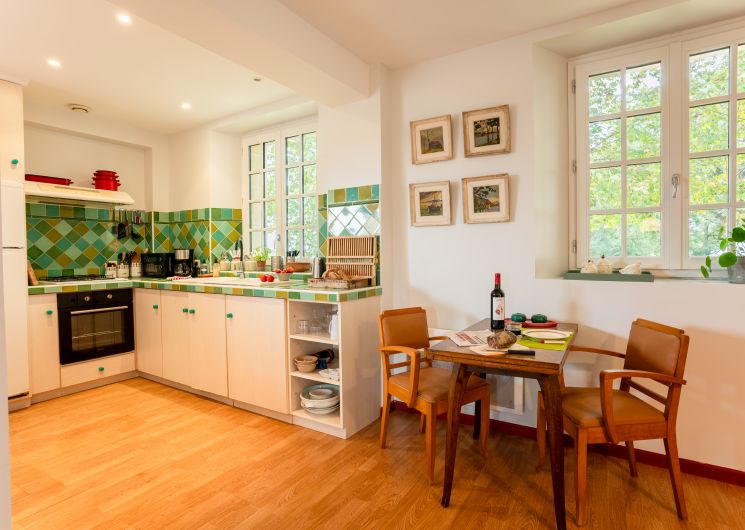 Niché au cœur d’un vaste parc arboré, le domaine offre un cadre paisible idéal pour se ressourcer. Vous pourrez vous détendre au bord de la piscine et profiter pleinement de la tranquillité des lieux.