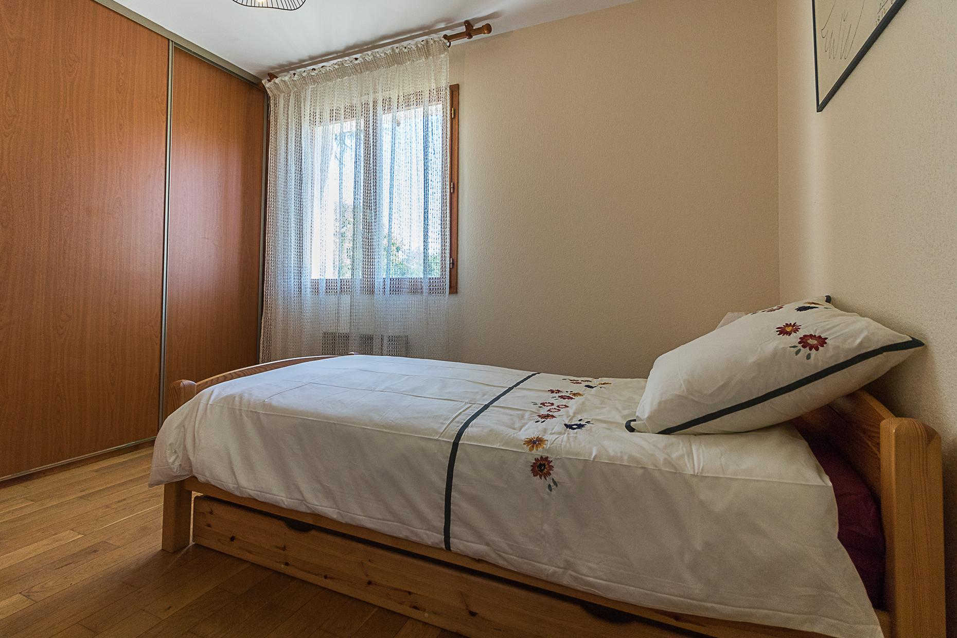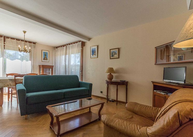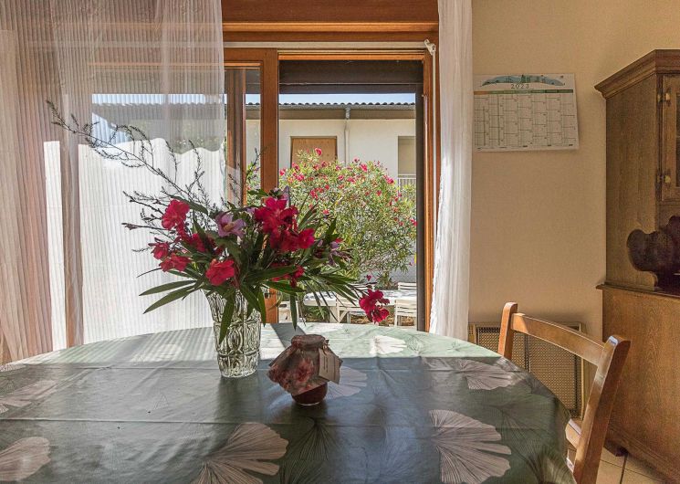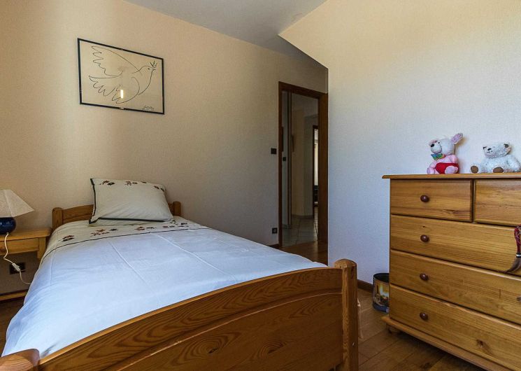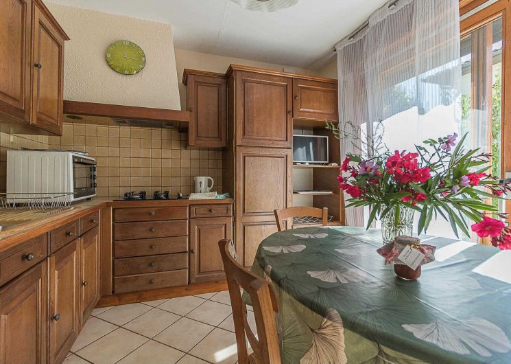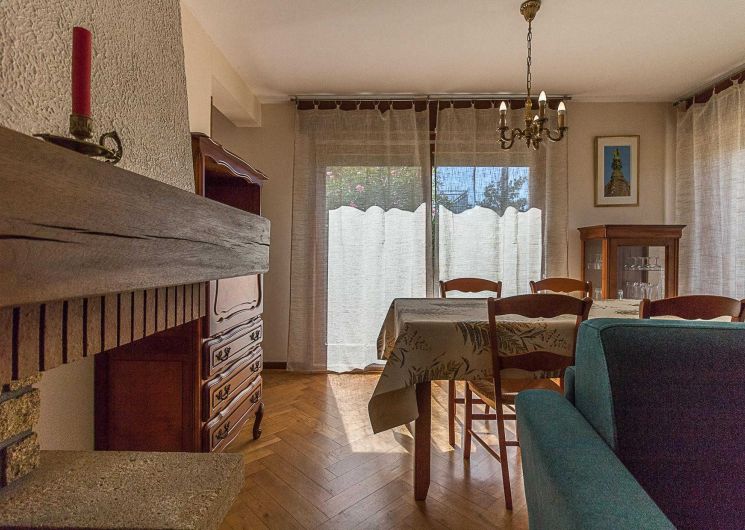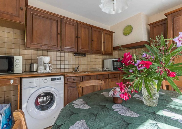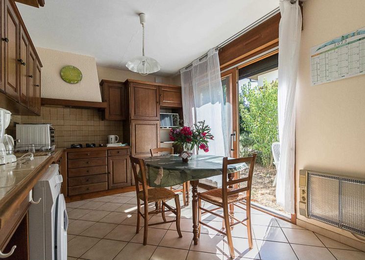 El piso es de una sola planta: entrada, salón con zona de estar (convertible en cama doble de 140 cm) y comedor, cocina independiente, 2 dormitorios (1 x cama individual de 90 cm, 1 x cama doble de 140 cm), cuarto de ducha, WC con lavabo. Calefacción eléctrica y aire acondicionado reversible en el salón y el hall de entrada. Conexión Wifi a Internet.