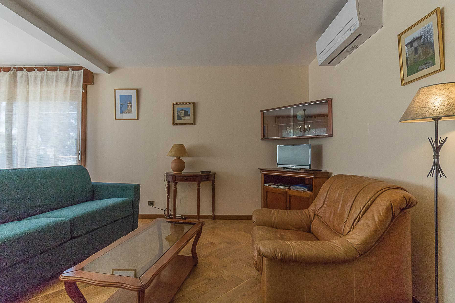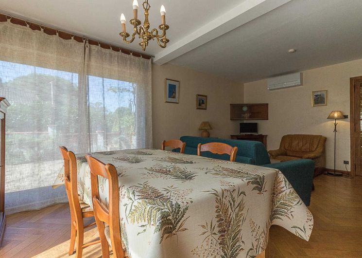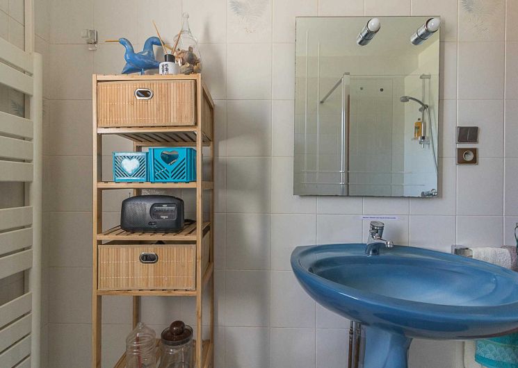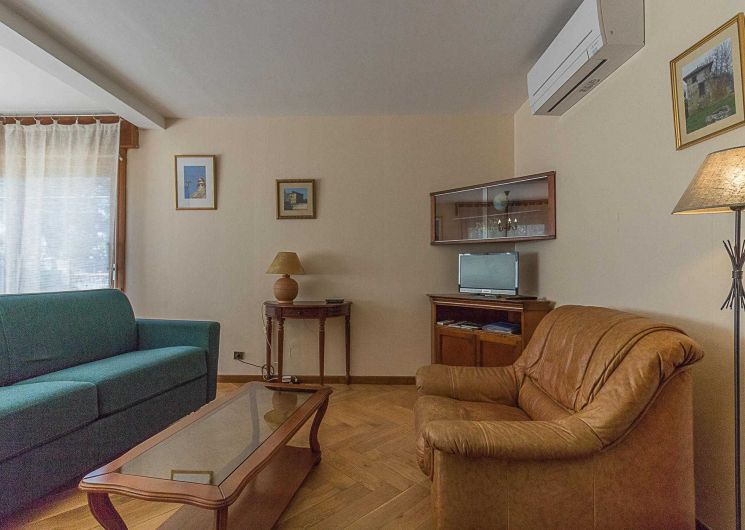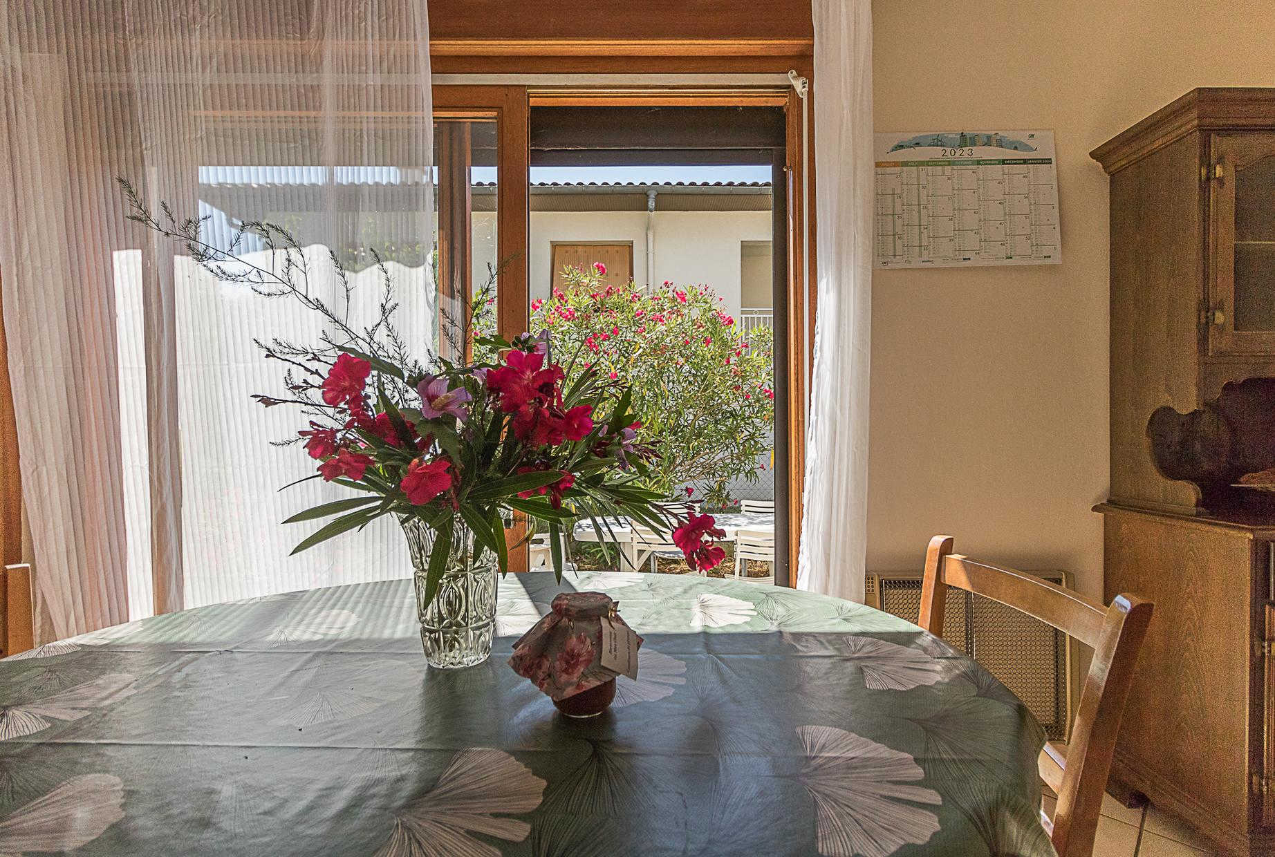 El piso es de una sola planta: entrada, salón con zona de estar (convertible en cama doble de 140 cm) y comedor, cocina independiente, 2 dormitorios (1 x cama individual de 90 cm, 1 x cama doble de 140 cm), cuarto de ducha, WC con lavabo. Calefacción eléctrica y aire acondicionado reversible en el salón y el hall de entrada. Conexión Wifi a Internet.