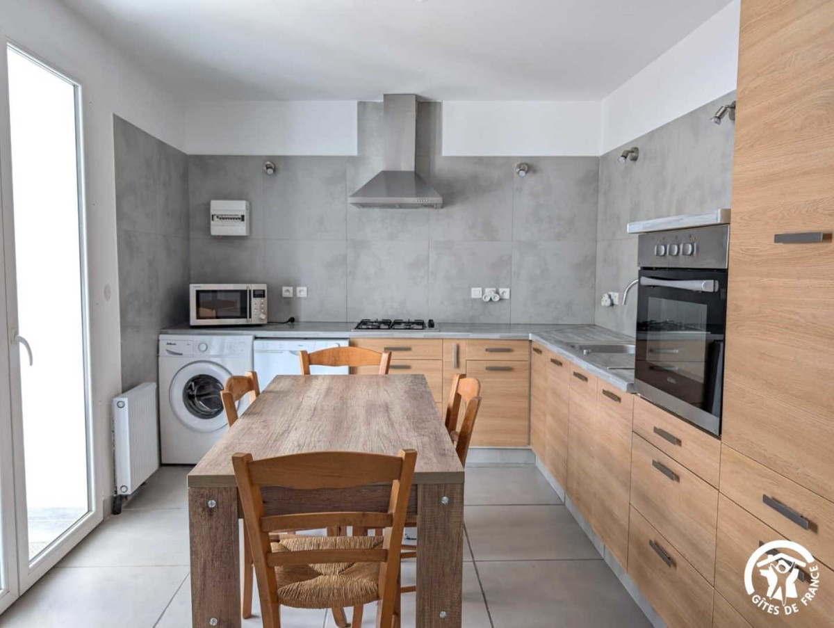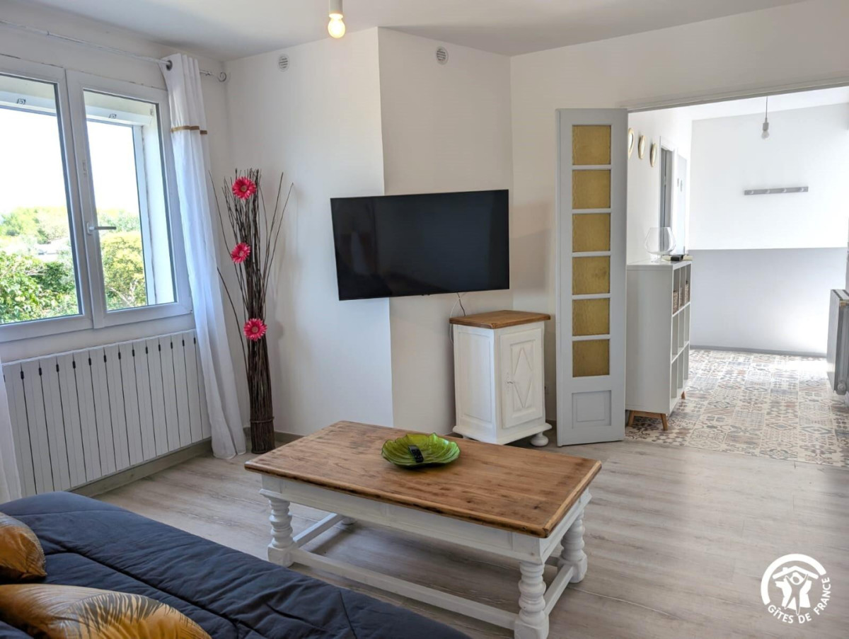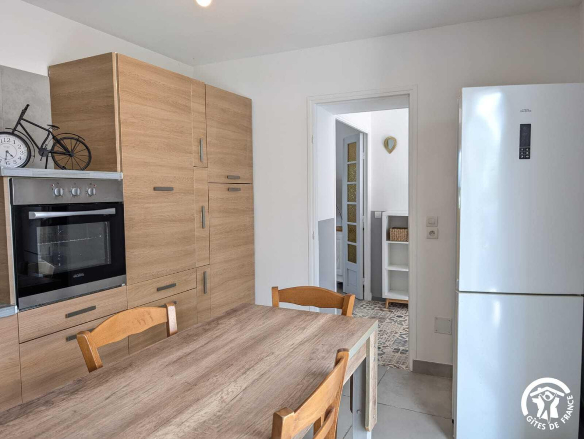 Ce gîte peut accueillir 3 personnes. Situé au sud de Béziers à côté de domaines viticoles vous aurez accès à diverses attractions des alentours tout en profitant de la sérénité des lieux. Parcourez à pied ou à vélo le Canal du Midi et faites une pause aux 9 écluses de Fonséranes. Plus au sud, activités nautiques ou farniente sur le sable des plages de Sérignan ou Valras. Beaucoup d’animations vous attendent sur la côte Méditerranéenne. Au nord, découvrez le charme du parc naturel du Haut-Languedoc avec ses lacs, rivières, sentiers de randonnées… Le gîte se situe au 1er étage d’une maison individuelle sans vis à vis. – Cuisine équipée avec table à manger. Réfrigérateur-congélateur, four, lave-vaisselle, micro-ondes, cafetière, bouilloire, grille-pain, lave-linge… – Séjour avec canapé et TV – Une chambre avec un lits double en 140x190cm – Une chambre avec un lit simple en 120x190cm – Une salle d’eau avec deux éviers et douche à l’italienne – WC indépendant – Terrasse avec table et chaises ainsi qu’un barbecue et un parasol – Une 2ème terrasse au rez-de chaussée avec table et chaises et parasol – Un extérieur aménagé avec fauteuil, transat et vélo élliptique – Vous pourrez vous garer sur le terrain qui est fermé par un portail. Un local couvert est à votre disposition pour ranger vos vélos ou trottinettes à l’abri.