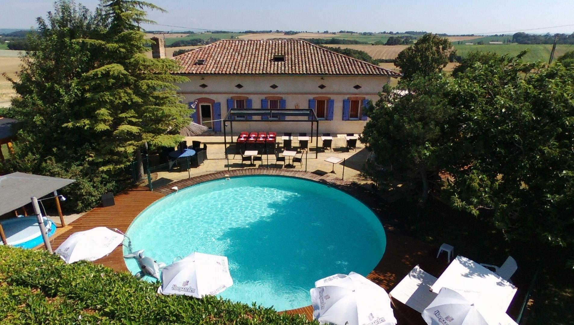 Grupo casa rural ubicado en una antigua casa de labranza, donde el propietario también ha construido un pequeño estudio. Grande vallada 9000 m², cocina equipada con al aire libre. Gran terraza, columpios, ping-pong, bolos iluminó la noche, alrededor de piscina privada (10 m, prof. de 1.40 m), asientos spa 5. Planta baja: living comedor, cocina, 2 dormitorios, 2 cuartos de baño con wc. Arriba, 4 dormitorios, baño con wc. Calefacción central de gasoil. A las puertas del Tarn, a 25 minutos de Toulouse, casa grande hasta 15 personas, en amplias habitaciones amuebladas arriba en el ático. Todo está pensado para una estancia con amigos o una reunión familiar. Instalaciones de ocio son numerosas, la piscina del spa, columpios, juegos infantiles, etc.. 6000 Metros cuadrados, totalmente cerraron. El equipo nacional, el número de habitaciones, permitir la recepción de los grupos principales, con gran comodidad.