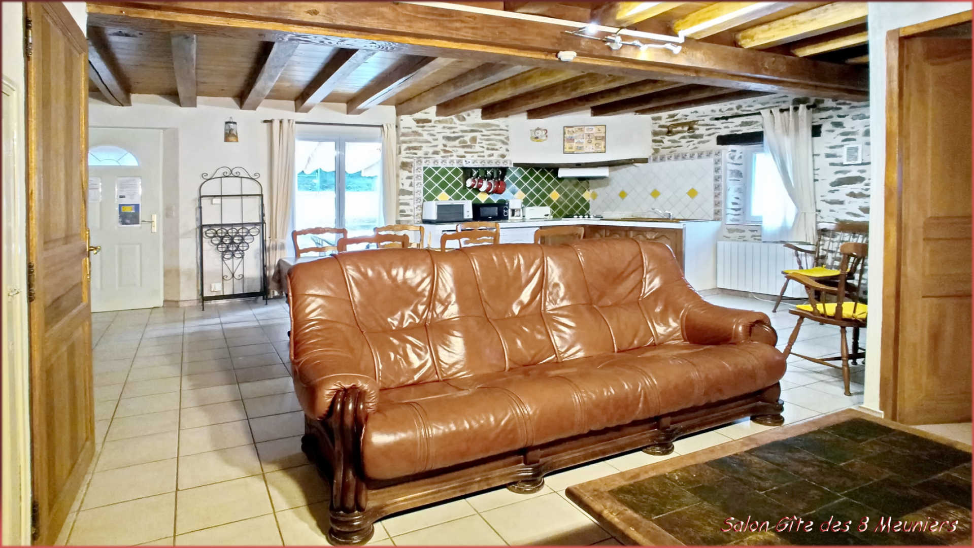 • Gîte des 8 Meuniers: salón de 40 m² con cocina abierta (horno, microondas, lavavajillas, frigorífico-congelador, placa de gas, cafetera de filtro), zona de comedor y salón con chimenea y televisión.