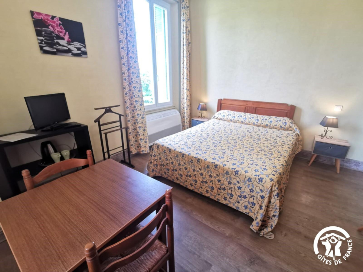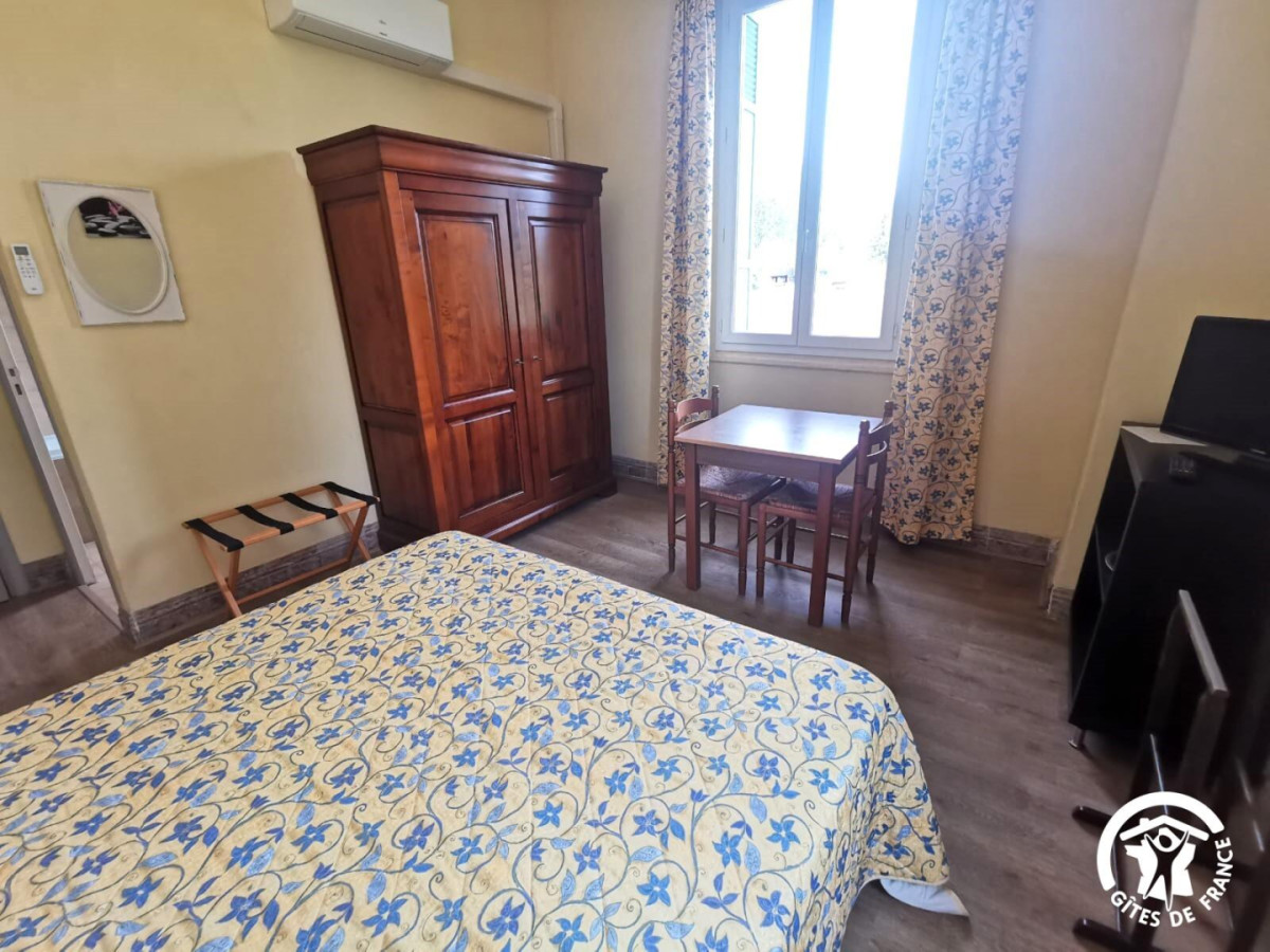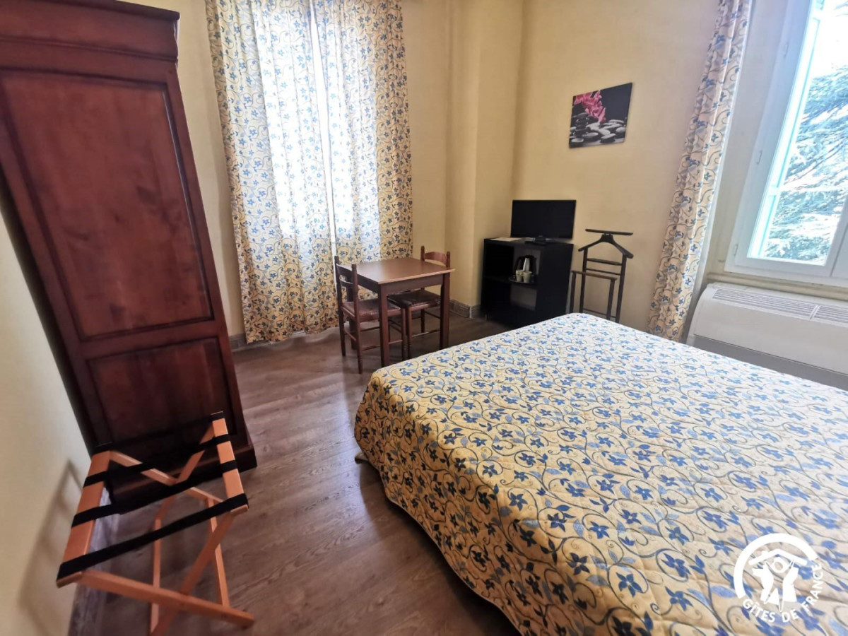 Vous serez accueillis chaleureusement par votre hôte Mathilde au rez-de-chaussée de la maison, où se situe également une spacieuse salle de petit-déjeuner intérieure, salle où vous pourrez déguster de bons petits-déjeuners complets : viennoiseries (pains au chocolat, madeleines…), pains, yaourts maison, jus de fruits, confitures, café, thé… Toutes les chambres, agréablement décorées et aménagées, qui se situent au premier étage, possèdent le Wifi ainsi que la climatisation, et une salle d’eau/salle de bain individuelle. A l’extérieur, vous profiterez d’un très beau jardin au calme avec un salon de petit-déjeuner extérieur, agréable au printemps et en été pour se détendre au soleil (ou à l’ombre) avec un bon petit-déjeuner. Le Parc aux Cèdres possède également une piscine commune, idéale pour se rafraîchir en été ! Attractions touristiques : Commencez par faire un tour dans la petite ville médiévale de Laroque, bâtie sur un piton rocheux, avec son riche patrimoine historique, en témoignent son église et son château (inscrit aux Monuments Historiques), et vous pourrez passer des moments de détente en flânant à travers ses ruelles pour découvrir son beffroi ou encore son ancienne magnanerie. Découvrez aussi le petit village de Brissac, un village médiévale charmant avec son château et son parc aux arbres majestueux. A seulement 20 kilomètres de Laroque, découvrez le site exceptionnel du Ravin des Arcs lors d’une randonnée et émerveillez-vous devant ce site niché au creux du lit du Lamalou, avec son arche naturelle impressionnante façonnée par la rivière. Un peu plus loin, ne manquez pas le Grand Site du Cirque de Navacelles, un paysage unique et spectaculaire, où vous pourrez là aussi faire de très belles randonnées avec des panoramas immanquables sur l’un des plus grands canyons d’Europe. Ne manquez pas également de faire un détour par le marché de Ganges, où vous pourrez retrouver tous les artisans et les produits locaux les vendredis matin dans la charman – Dans cette chambre de 24m² pour deux personnes, vous retrouverez un lit double 160×200 cm avec ses tables et lampes de chevet, une télévision sur son meuble, une table basse, une armoire, ainsi qu’une salle d’eau avec WC, baignoire et vasque avec miroir.
