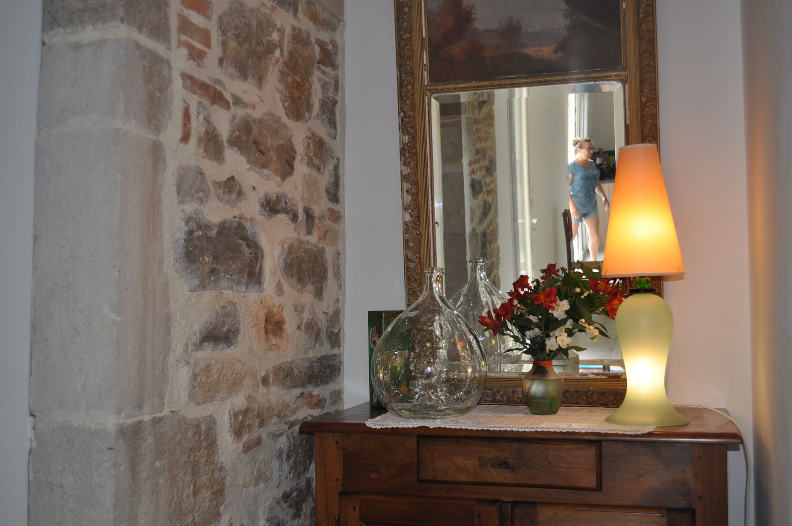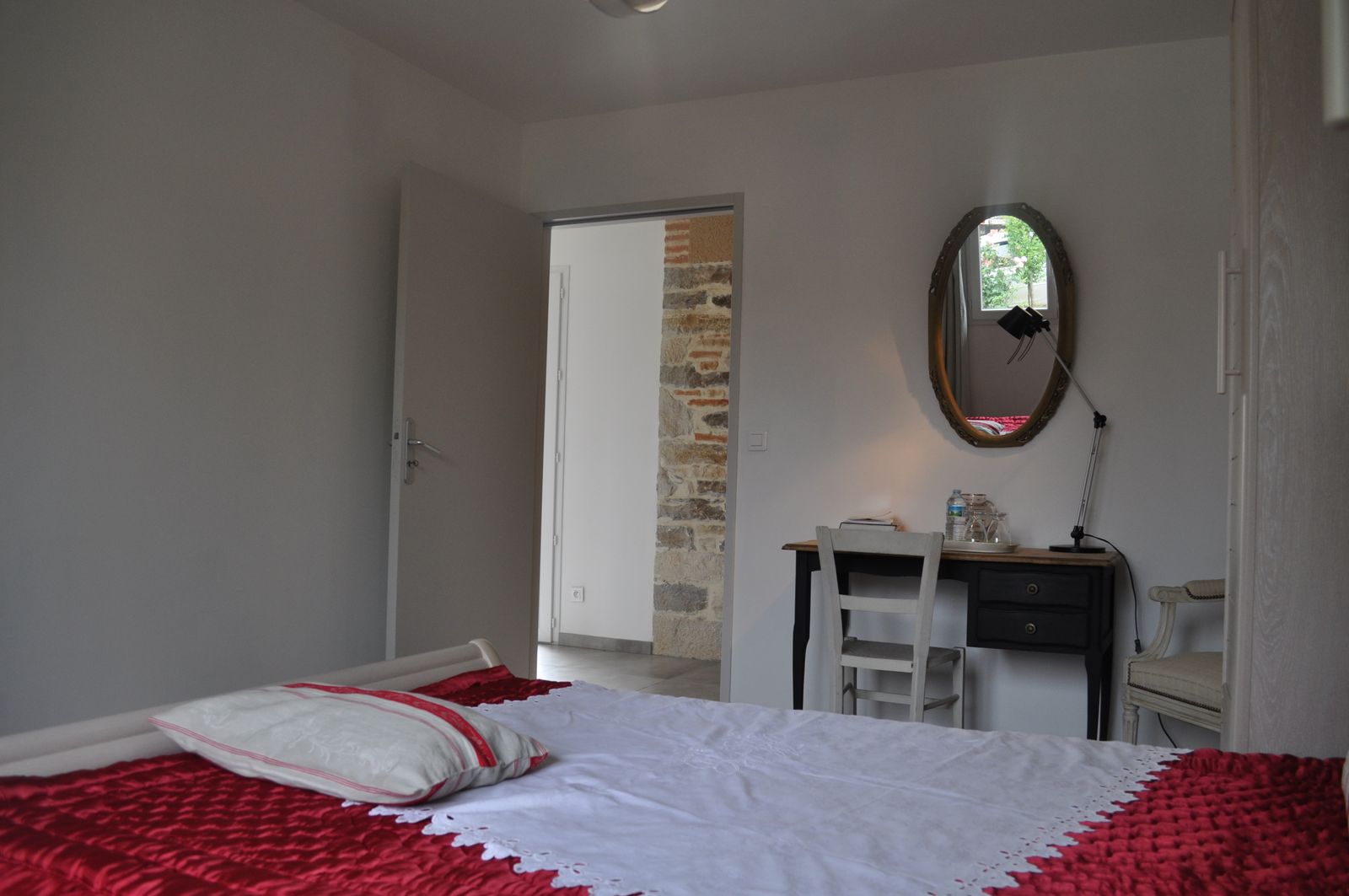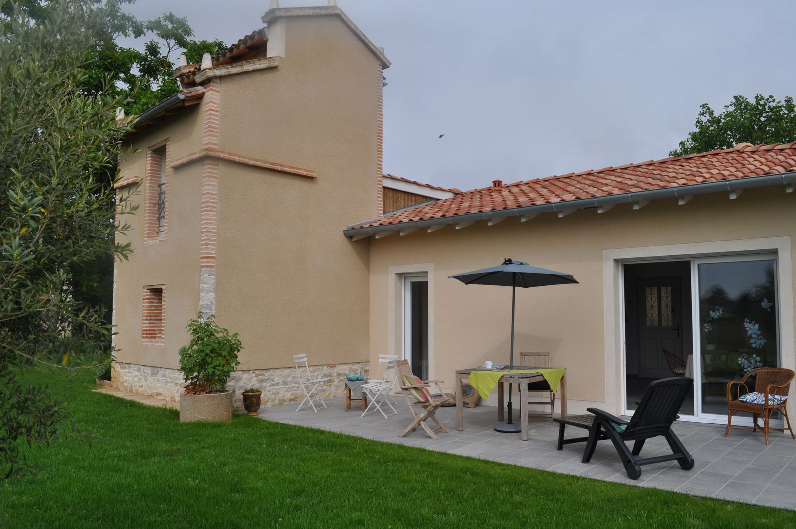Hermoso espacio cubierto de hierba frente a la terraza de la gîte asegurando toda la tranquilidad.