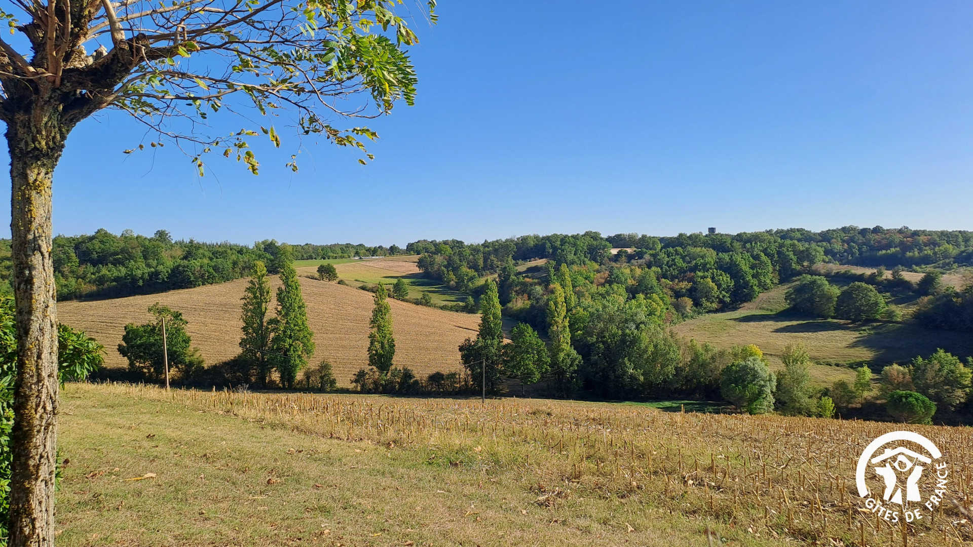 Maison totalement indépendante (accès par un chemin empierré d’environ 200m), ce gîte ouvre d’un côté sur le vaste terrain fleuri avec salon de jardin, barbecue, piscine privative couverte et spa 6 places, et de l’autre côté sur la terrasse couverte offrant une vue panoramique sur la campagne et les toits du petit village de Montdurausse.