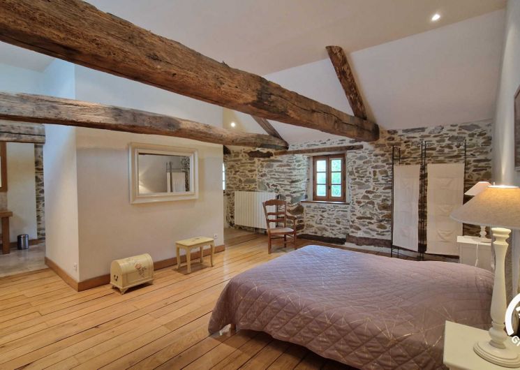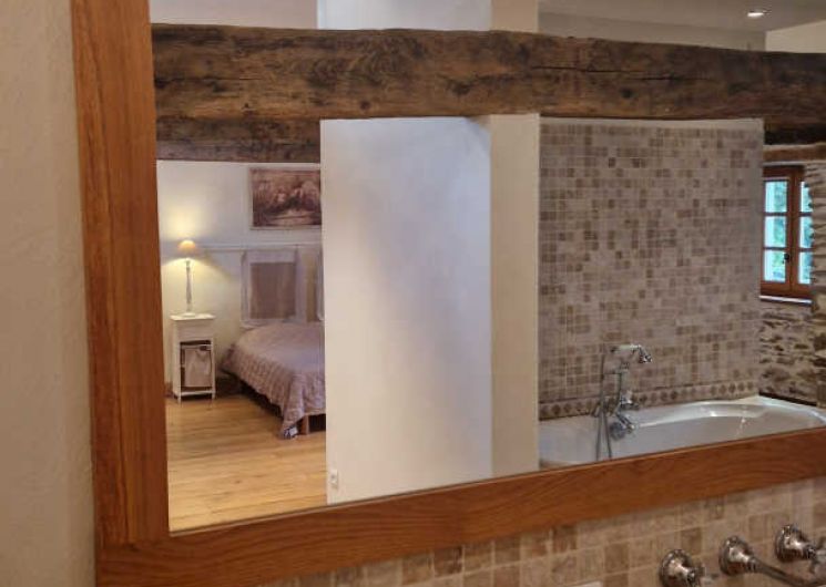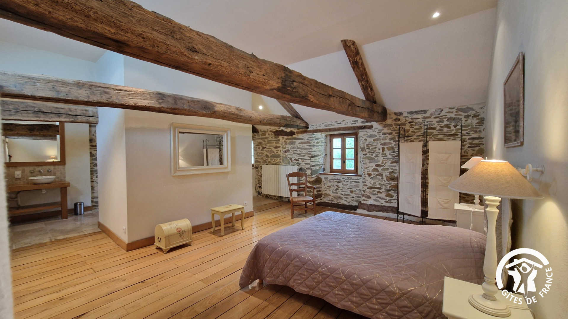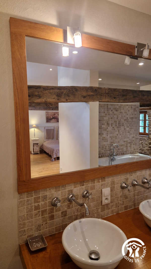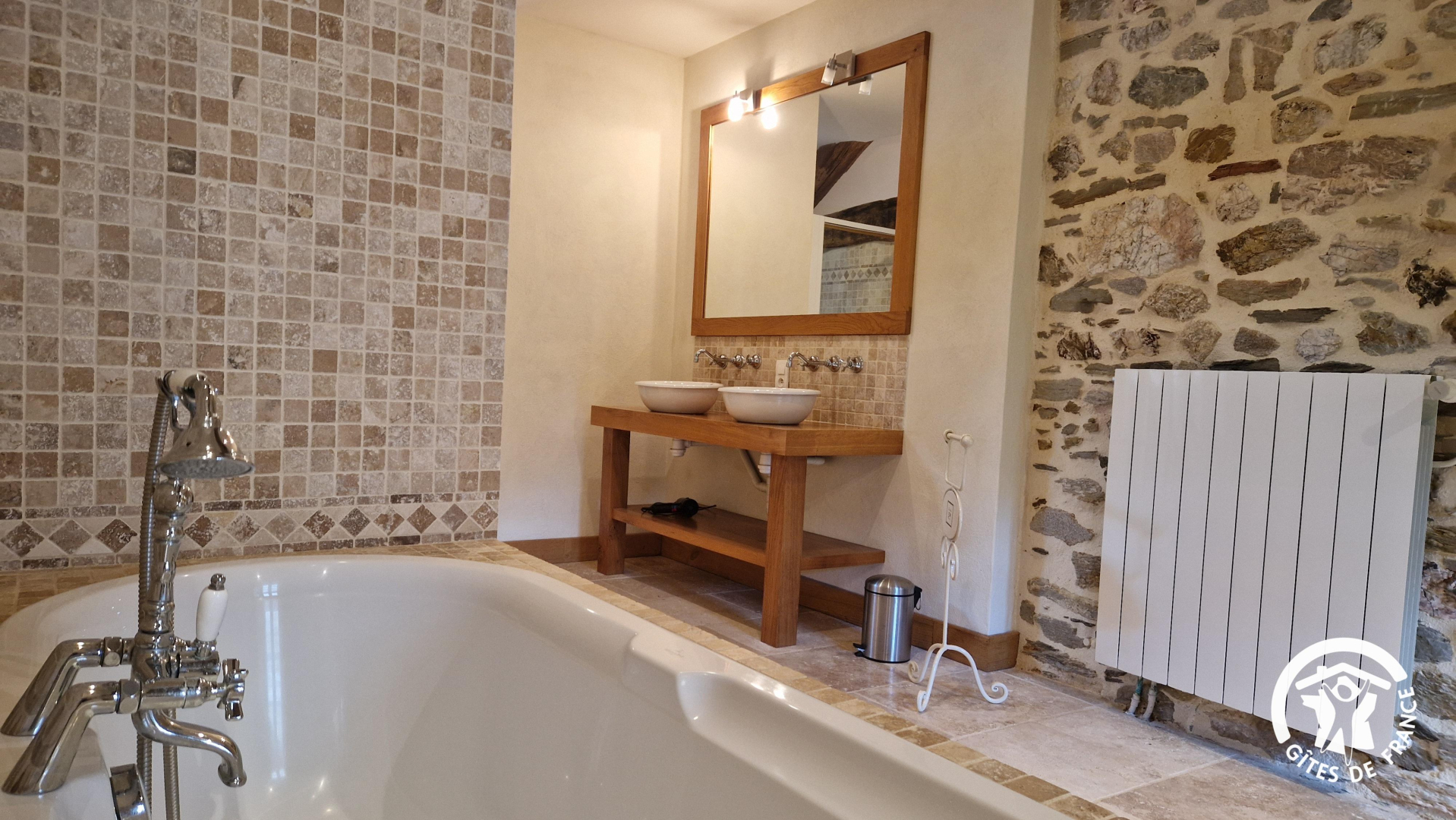 – A l’étage, une superbe chambre avec lit en 160cm et salle de bain ouverte. Une belle baignoire, une grande douche et deux vasques.