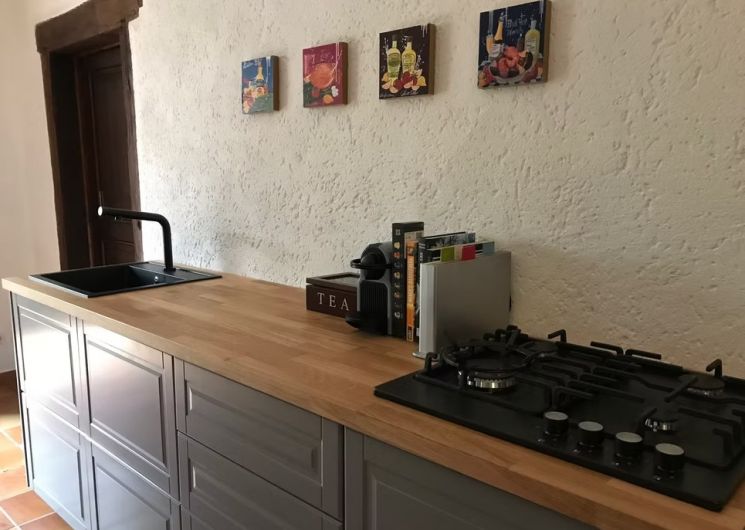 Le gîte Les Cyprès séduit par son charme authentique et son confort moderne. Il peut accueillir jusqu’à six personnes et propose des espaces généreux baignés de lumière. La grande pièce de vie ouvre sur la terrasse et sur la campagne environnante, créant une continuité naturelle entre intérieur et extérieur. La cuisine entièrement équipée permet de préparer des repas conviviaux à partager en famille, tandis que les chambres offrent un repos paisible dans une ambiance douce et apaisante. La salle de bain moderne et fonctionnelle complète cet espace pensé pour votre bien être.