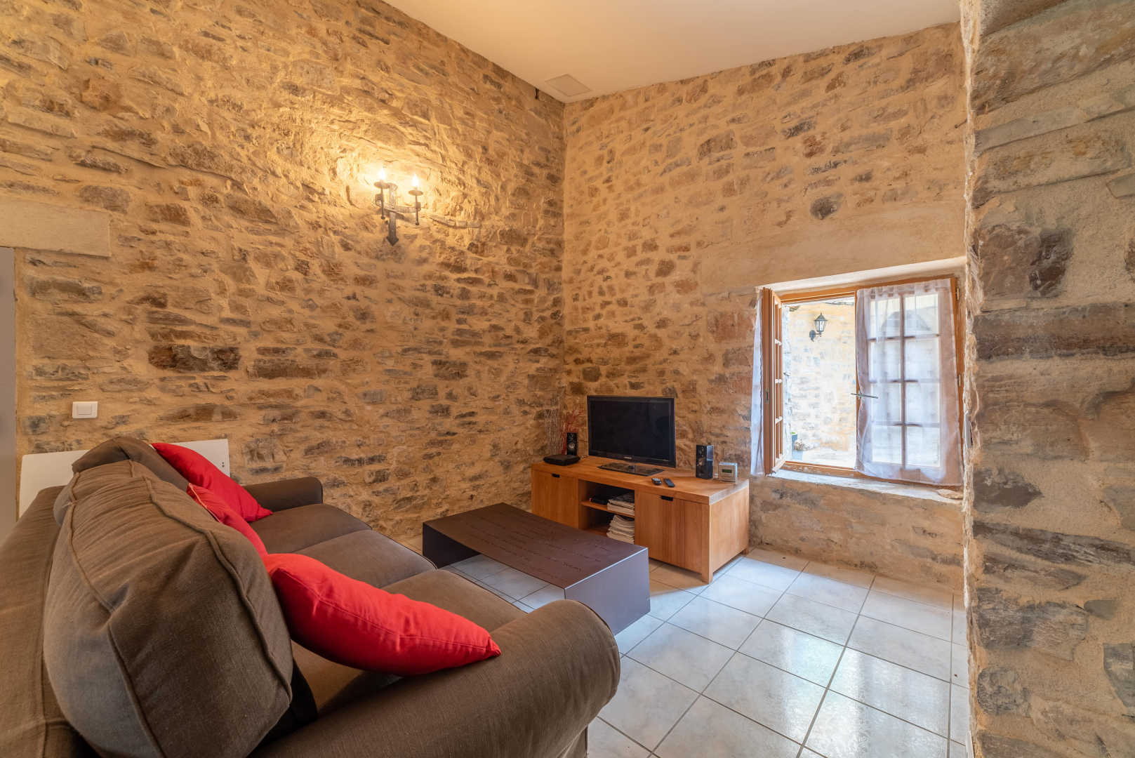 LE MOLIN : salon avec sa grande cheminée vous accueille, pendant que les enfants profitent d’un coin cocooning juste à côté grâce au vidéoprojecteur. Accédez ensuite au balcon et sa surprenante vue. Vous y apprécierez des grillades grâce au barbecue/plancha, sinon, la cuisine / salle à manger est juste à côté.