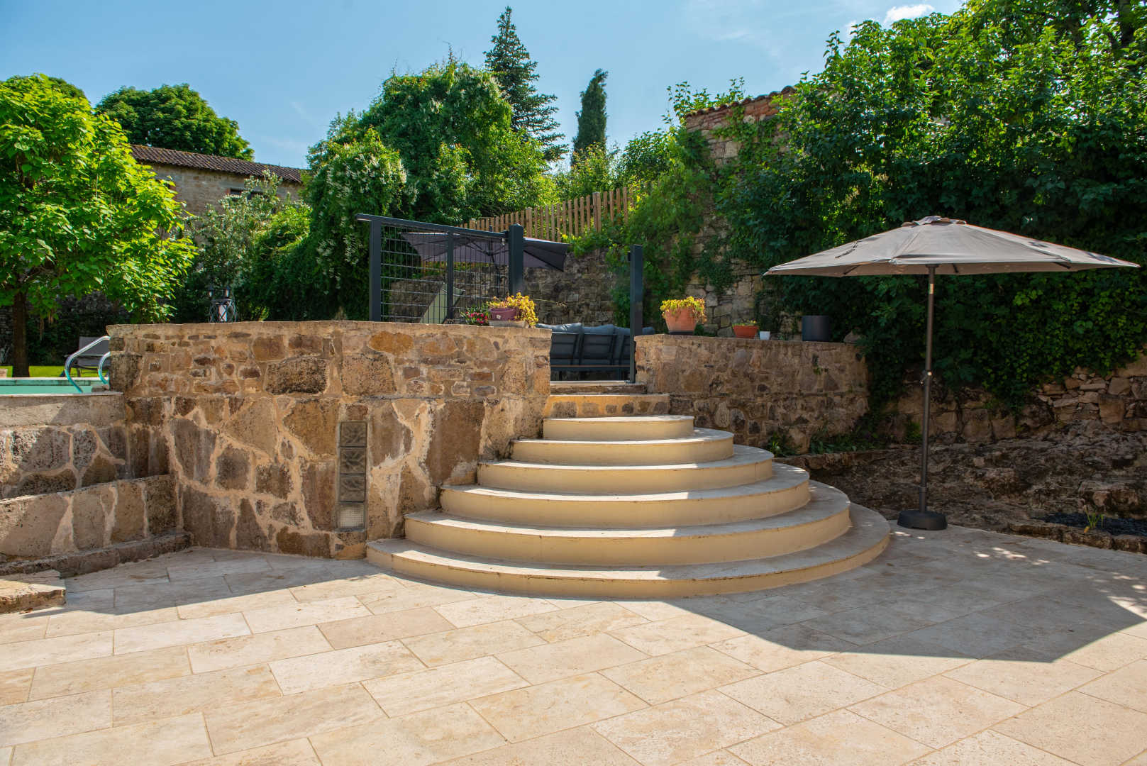Extérieurs communs qui permettent de profiter de la grande piscine et un salon de jardin.