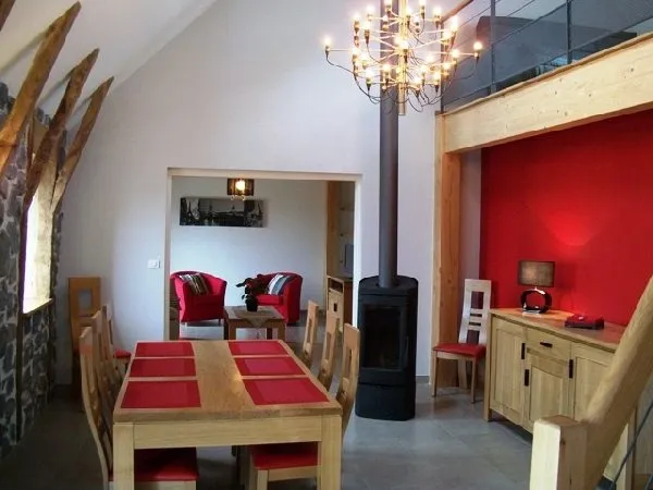 Gîte on 2 levels in a small village (semi-detached to an other gîte): 4 bedrooms (2 double beds and 4 single). Bathroom, fully-equipped kitchen, fireplace. Central heating. Terrace. Linens supplied + beds made.