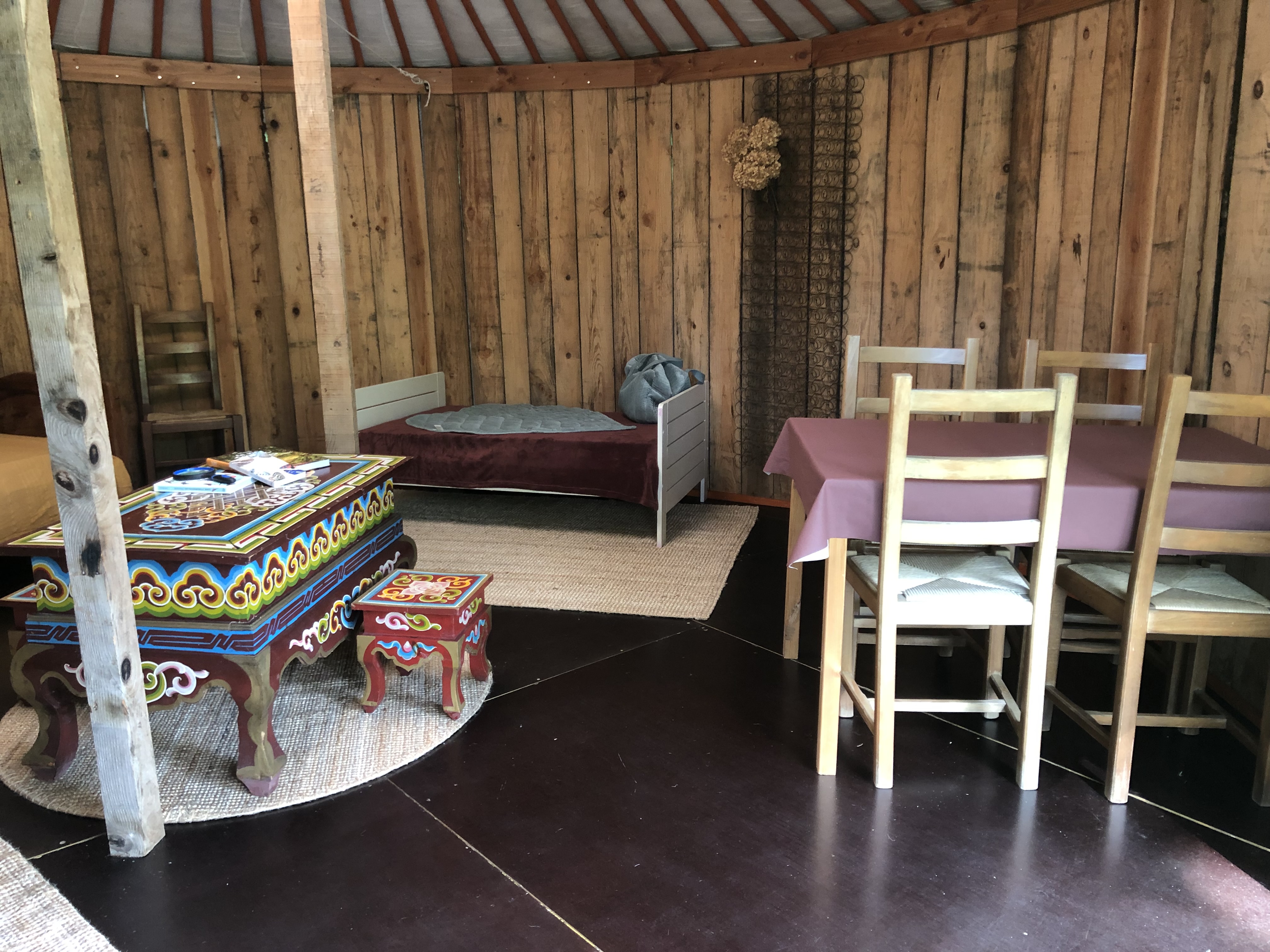 Todo el espacio es privado, a tu disposición para completar tu estancia: un chalet con cocina totalmente equipada, una yurta comedor y de relax, con mesa, sofá, juegos para todas las edades -incluso para niños pequeños- y dos camas supletorias disponibles. Cuna, bañera y trona disponibles. Una terraza, cabina de ducha y aseo seco completan las instalaciones. Hay juegos de exterior y una hamaca para relajarse. Estamos preparando algunas novedades y sorpresas para la temporada 2026, ¡y esperamos darte la bienvenida!