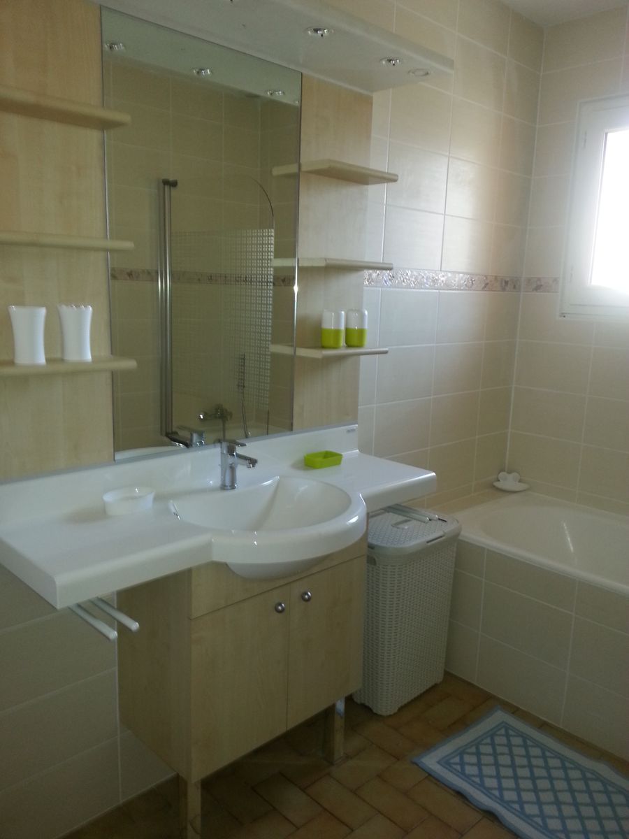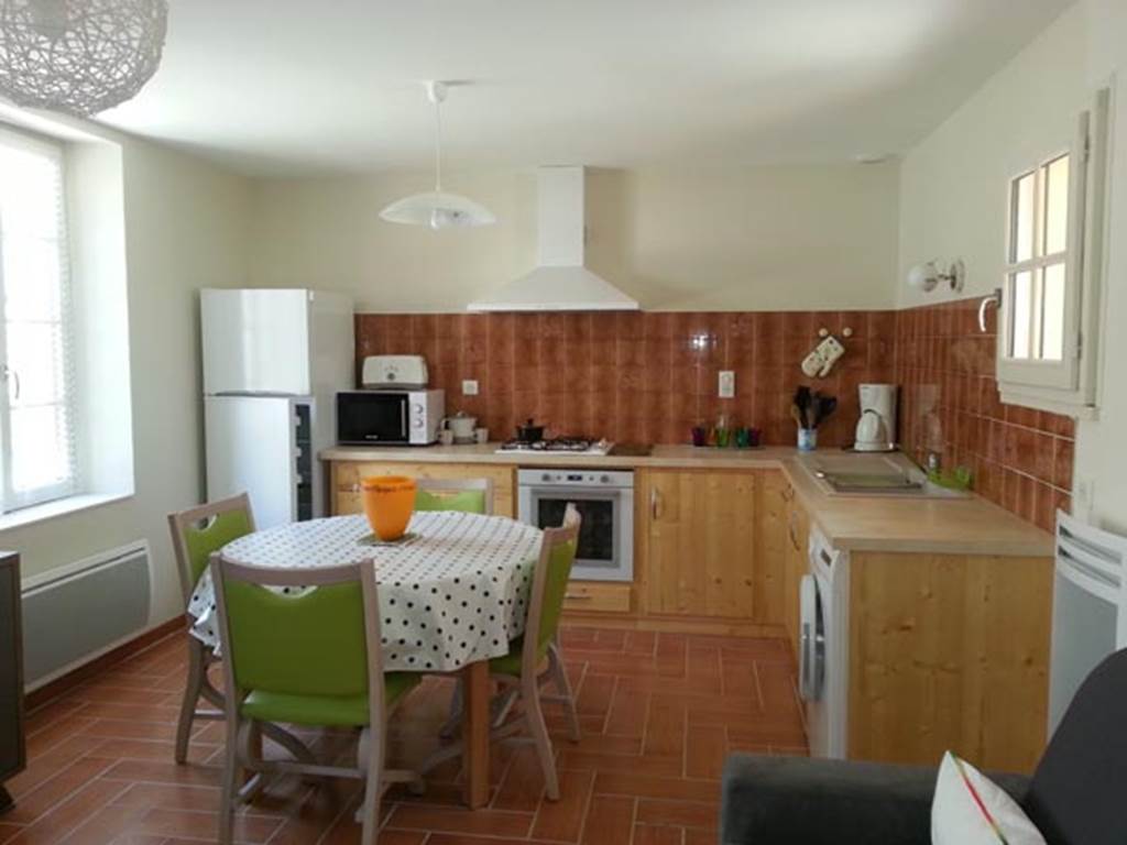En la planta baja: 1 sala de estar (1 sofá, televisión de pantalla plana) con área de cocina (elementos integrados, microondas, lavadora). En el primer piso: 1 dormitorio (1 cama 140, 1 oficina), 1 dormitorio (1 cama 90, 1 oficina), 1 baño, 1 WC. Tribunal, cercado por clausras de madera, con muebles de jardín, barbacoa.