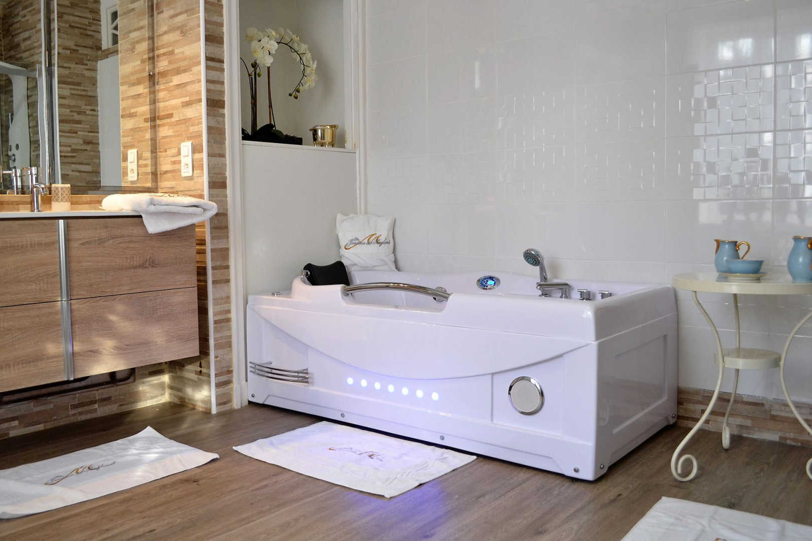 Cuatro habitaciones en la casa con sus anfitriones, André y Chantal, en la 1ª y 2ª planta, cada uno con baño en suite, incluyendo baño y ducha balneo. Habitaciones climatizadas, con tv, conexión a internet, conexión para iPod. Salón de huéspedes fumadores habitación en 1er piso, sala comedor y amplio living comedor en la planta baja. En planta baja, sala de conferencias para trabajo y ocio, zona wellness con sauna, baño turco, spa, gimnasio y fitness. Lleve a casa sirviendo a todos los niveles de la casa. Estacionamiento amplio parque cerrado, piscina, seguro. Tabla d ‘ hôtes. Se aceptan mascotas. El prestigio y la comodidad de una casa de lujo en el corazón de Mazamet. Aquí todo está pensado para la comodidad de una clientela exigente, buscando un lugar tranquilo y agradable, en el centro de la ciudad. Fortalezas de su experiencia, Chantal y André ofrecen éstos poco más que hacen los Jardins de Mazamet una casa de huéspedes única. El ascensor doméstico conduce suavemente desde el segundo piso a la planta baja, donde podrá disfrutar de un baño de vapor o sauna sesión antes de relajarse en el jacuzzi, o sumergirse en la piscina Parque segura. Noche en el salón o en los voladizo invitados terraza puede disfrutar de una refrescante bebida o coctel casa antes de pasar a la mesa y compartir calidad y tabla de host abundante. Esta mansión restaurada en 2012 ha mantenido, el alma de las casas burguesas de finales del siglo XIX mostrando una discreción industrial y gloriosa pasada.