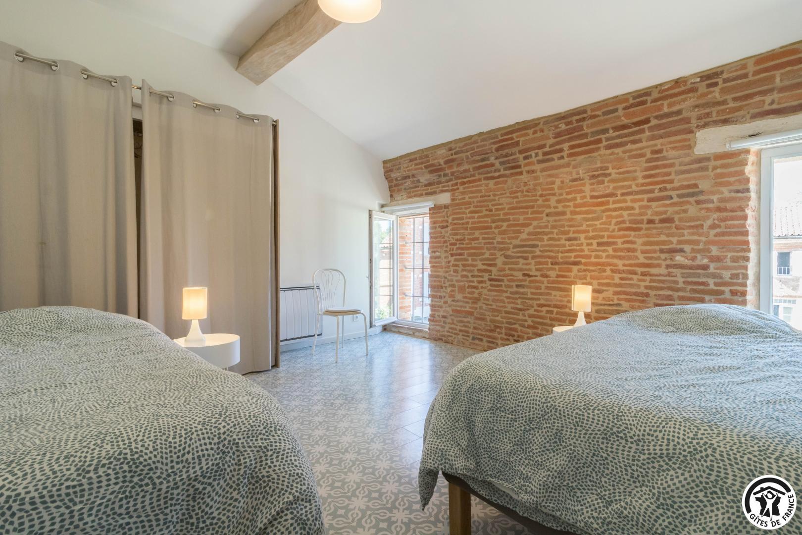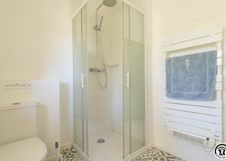 – En la planta superior, 2 habitaciones (2 camas individuales de 90*200 cm, que pueden unirse para formar 1 cama doble de 180*200 cm) (1 cama doble de 160*200 cm) y un cuarto de ducha/WC.