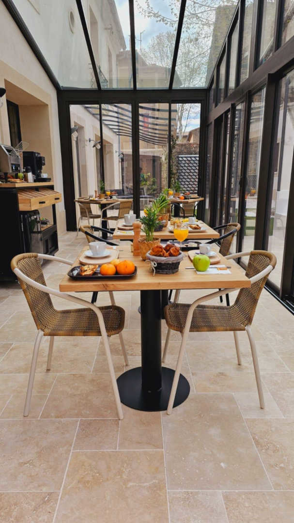Au calme et à proximité du centre du village, au fond d’une petite impasse, les Marronniers possèdent quatre très belles chambres dans lesquelles vous pourrez vous détendre sereinement et profiter d’un agréable séjour, que ce soit dans les parties communes comme la salle de jeu du domaine, ou les extérieurs de la chambre d’hôtes. Une fois passé le portail des Marronniers, vous découvrirez un grand espace extérieur très vert et arboré, avec un terrain de pétanque, une balançoire et une balancelle… un lieu idyllique où vous serez accueillis chaleureusement par vos hôtes ! Avant d’accéder aux chambres, vous pourrez profiter d’une belle salle de jeux avec un babyfoot et une borne d’arcade originale pour des parties endiablées entre amis ou en famille ! La maison d’hôtes possède également un salon à l’étage, avec une grande table, un canapé et une bibliothèque, un lieu idéal pour lire, jouer à des jeux de société, discuter ou travailler. Prenez votre petit-déjeuner dans la véranda spacieuse, avec une belle vue sur le parc extérieur. Petit-déjeuner continental composé de jus de fruits, laitages, boissons chaudes, viennoiseries, fruits, pain, beurre, confitures. Attractions touristiques : Aux portes de Montpellier, ne manquez pas de visiter Lavérune qui recèle de superbes demeures des ” folies ” montpelliéraines. Découvrez par exemple le Château des Evêques. Vous pourrez également vous promener dans les prés humides de la Mosson, non loin de la maison d’hôtes, une zone naturelle d’intérêt écologique floristique et faunistique, agréable pour une balade au printemps ou en été. Accédez facilement à la ville de Montpellier par les transports en commun (tram et bus), où vous pourrez découvrir la place de la Comédie, les ruelles pittoresques de la vieille ville, la cathédrale Saint-Pierre, le Musée Fabre, le quartier Antigone, le Jardin des Plantes ! Enfin, détendez-vous sur les plages de sable fin de l’Hérault à Frontignan. – Dans cette chambre à l’esprit détente et relaxation de 13,50 m² qui possède la climatisation, vous pourrez profiter d’un grand lit de bonne qualité 160×200 cm avec une télévision pour vous détendre en toute tranquillité, ainsi que d’un placard. La chambre dispose également d’une salle d’eau avec une douche, un meuble avec vasque et miroir et des WC.