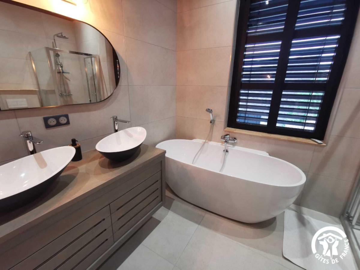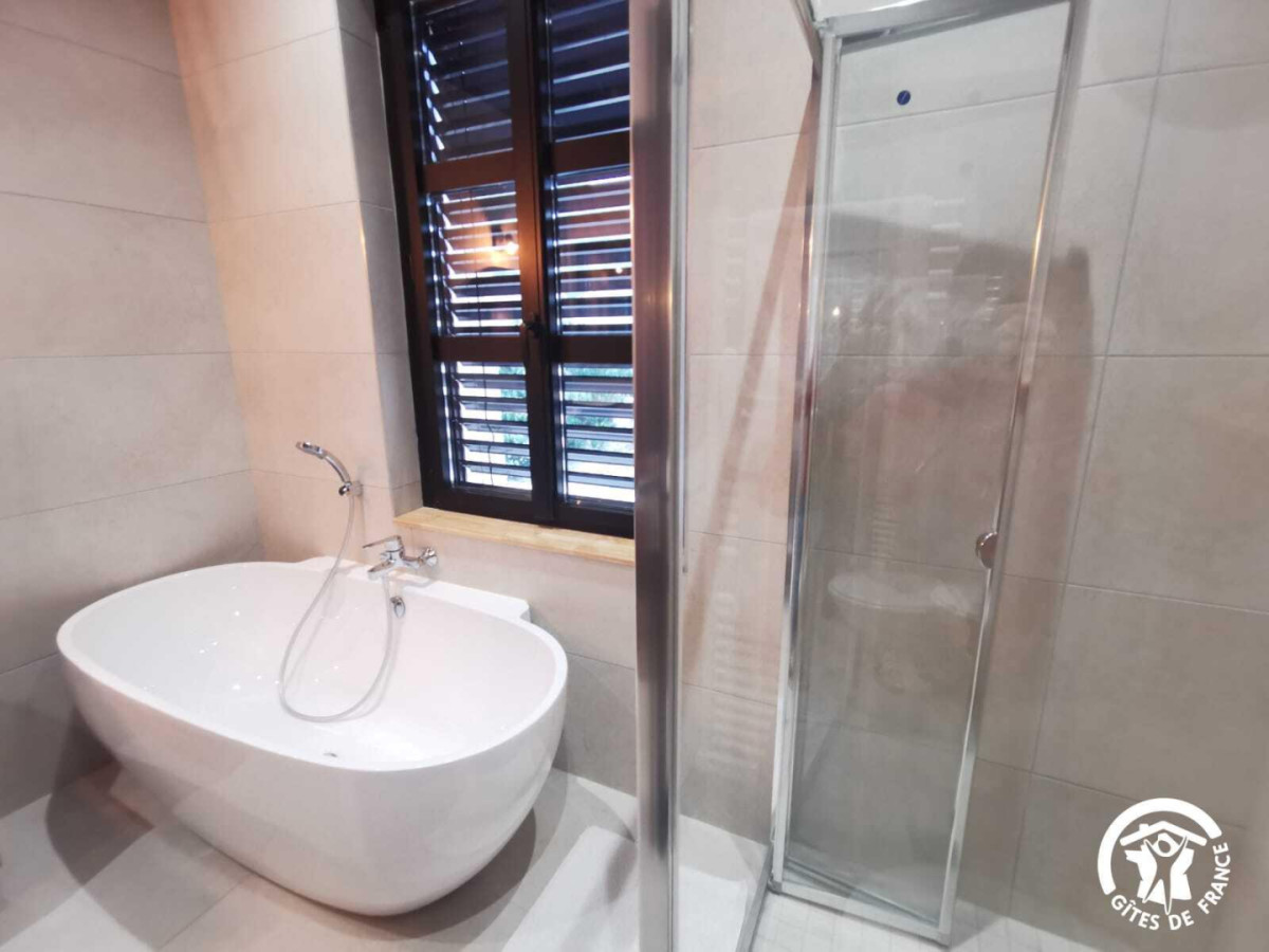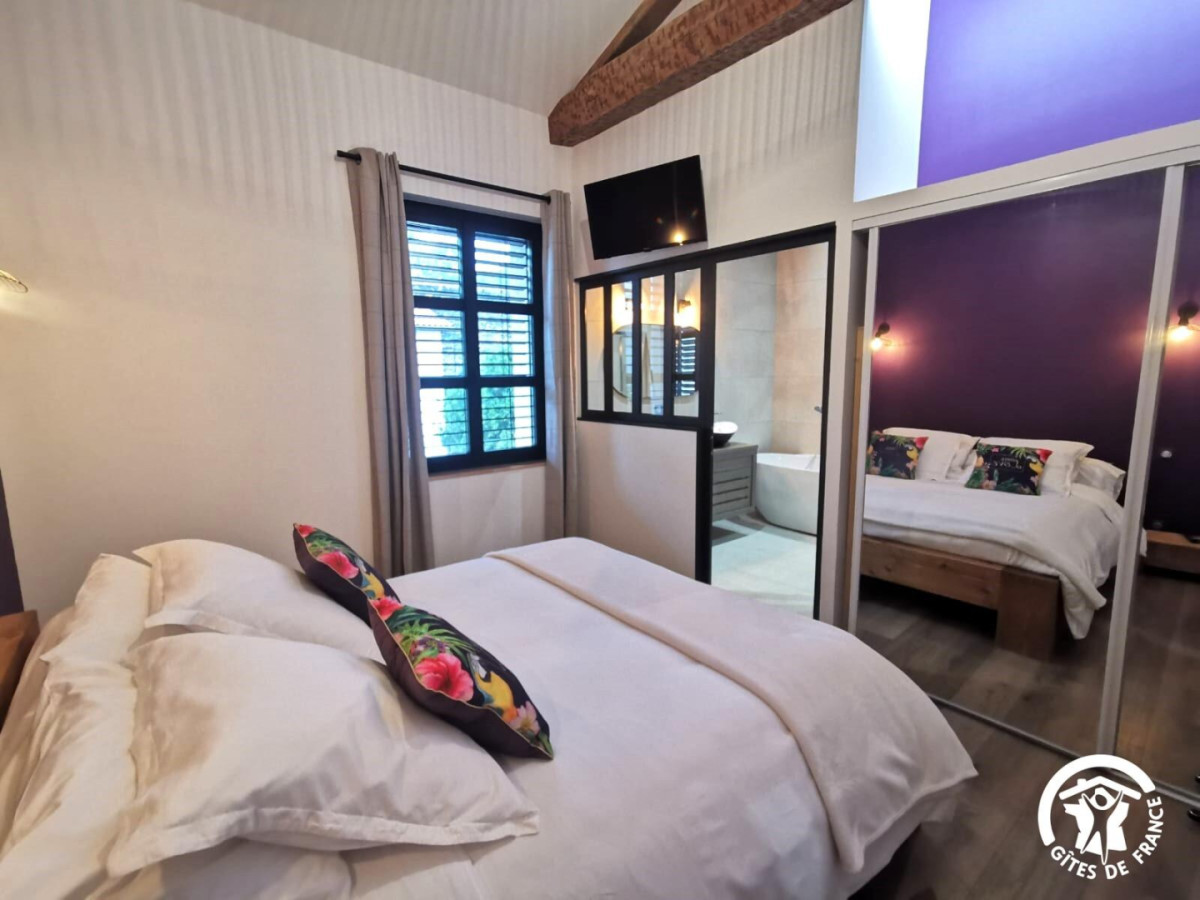 Au calme et à proximité du centre du village, au fond d’une petite impasse, les Marronniers possèdent quatre très belles chambres dans lesquelles vous pourrez vous détendre sereinement et profiter d’un agréable séjour, que ce soit dans les parties communes comme la salle de jeu du domaine, ou les extérieurs de la chambre d’hôtes. Une fois passé le portail des Marronniers, vous découvrirez un grand espace extérieur très vert et arboré, avec un terrain de pétanque, une balançoire et une balancelle… un lieu idyllique où vous serez accueillis chaleureusement par vos hôtes ! Avant d’accéder aux chambres, vous pourrez profiter d’une belle salle de jeux avec un babyfoot et une borne d’arcade originale pour des parties endiablées entre amis ou en famille ! La maison d’hôtes possède également un salon à l’étage, avec une grande table, un canapé et une bibliothèque, un lieu idéal pour lire, jouer à des jeux de société, discuter ou travailler. Prenez votre petit-déjeuner dans la véranda spacieuse, avec une belle vue sur le parc extérieur. Petit-déjeuner continental composé de jus de fruits, laitages, boissons chaudes, viennoiseries, fruits, pain, beurre, confitures. Attractions touristiques : Aux portes de Montpellier, ne manquez pas de visiter Lavérune qui recèle de superbes demeures des ” folies ” montpelliéraines. Découvrez par exemple le Château des Evêques. Vous pourrez également vous promener dans les prés humides de la Mosson, non loin de la maison d’hôtes, une zone naturelle d’intérêt écologique floristique et faunistique, agréable pour une balade au printemps ou en été. Accédez facilement à la ville de Montpellier par les transports en commun (tram et bus), où vous pourrez découvrir la place de la Comédie, les ruelles pittoresques de la vieille ville, la cathédrale Saint-Pierre, le Musée Fabre, le quartier Antigone, le Jardin des Plantes ! Enfin, détendez-vous sur les plages de sable fin de l’Hérault à Frontignan. – Dans cette grande chambre couleur prune de 21 m² qui possède la climatisation, vous pourrez profiter d’un grand lit de bonne qualité 160×200 cm avec une télévision pour vous détendre en toute tranquillité, ainsi que d’un grand placard. La chambre dispose également d’une salle de bain avec baignoire, douche, meuble double vasque et WC.