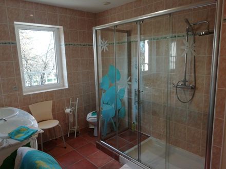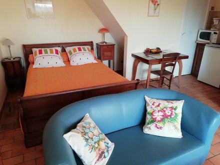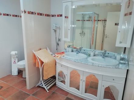 En la casa de los propietarios, con acceso indefinido. : CH “Aurore” (1×140, baño/WC, sofá, televisión, área de cocina, terraza privada). En el ala opuesta, Ch “Romance” (1×140, 1 cama para bebés, SDE/WC), CH “WaterPro” (1×140) con SDE/WC privado no comunicativo, CH “pastel” (1×90 + 1×120) con SDB/privado privado/privado no comunicante WC. Cocina de monedas y sala de estar privada con invitados (sofá, sillones, televisión de pantalla plana, terraza común).