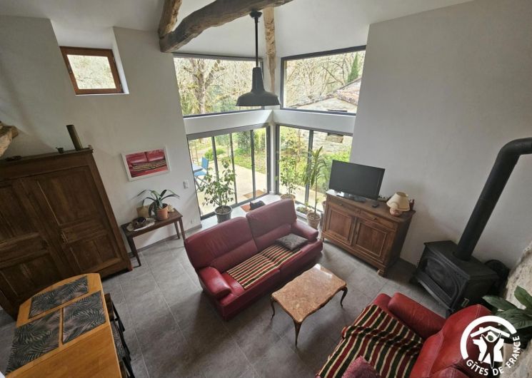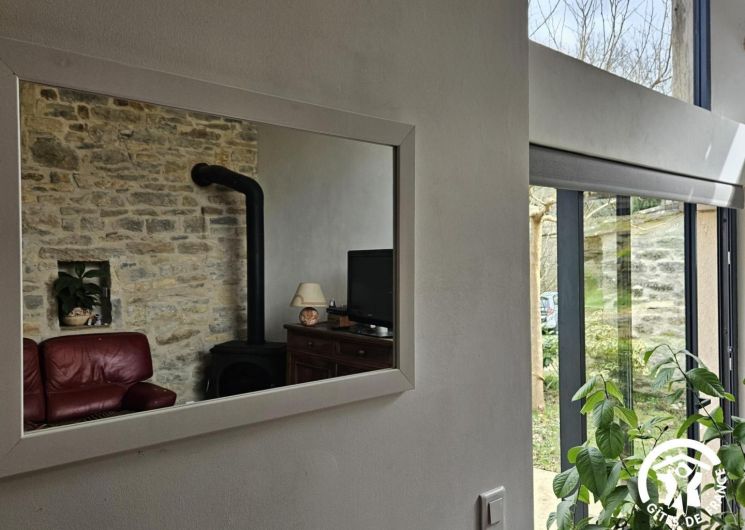 Al entrar, quedará cautivado por la luminosidad de la sala de estar, bañada por la luz de los grandes ventanales que se abren al exterior. El salón acogedor con televisión y estufa de leña crea un ambiente cálido y relajante. La cocina abierta totalmente equipada (placa de inducción, horno, microondas, frigorífico-congelador, lavavajillas) permite preparar comidas fácilmente y disfrutarlas en un ambiente agradable.