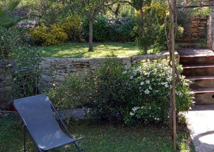 El gîte dispone de una gran terraza sombreada, ideal para comer al aire libre. Un jardín en terrazas, que da nombre al alojamiento, ofrece un espacio encantador para relajarse y disfrutar del entorno natural. También hay aparcamiento privado disponible.