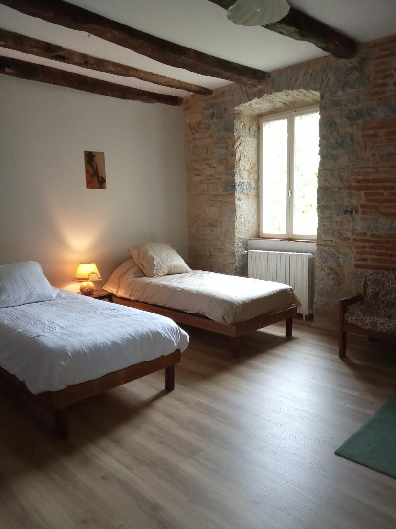 Una habitación espaciosa con dos camas de 90×200 cm juntas.
