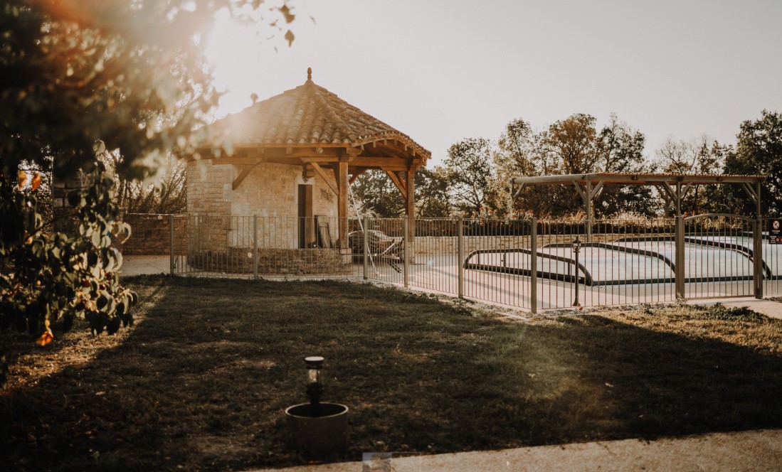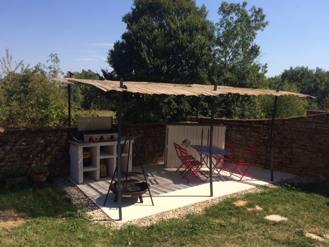 Gran terraza frente al alojamiento con sombra. Moneda equipada con muebles de barbacoa y jardín. Piscina cercada (puerta segura) 10×4 con escalera y espacio de remo.
