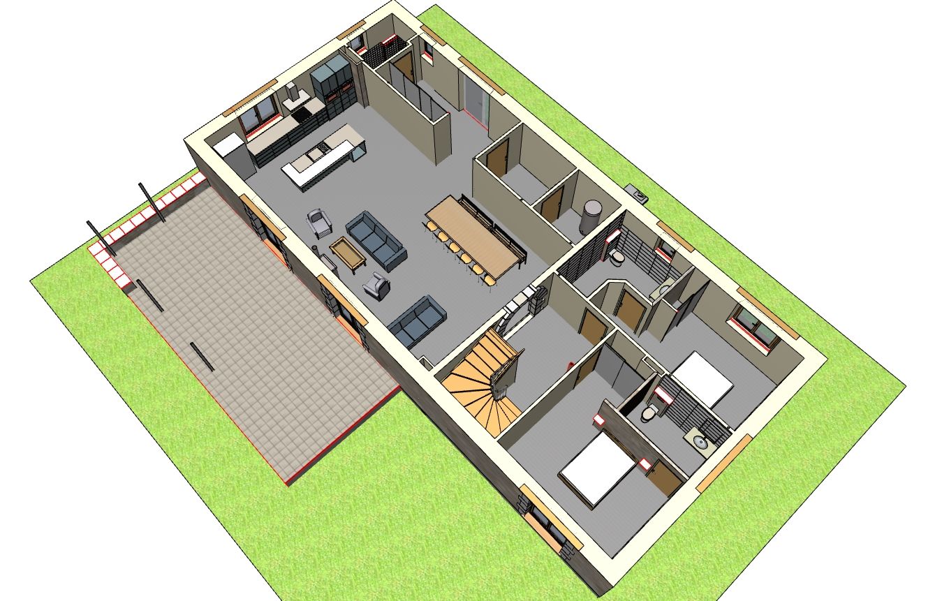 Arriba, 2 habitaciones con 1 cama 160×200 cada una, compartiendo un baño con WC privado. 1 dormitorio 1 cama 160×200, baño privado y WC. 1 dormitorio 1 cama 120 y 2 literas en 90 y 1 dormitorio 2 camas 80×200 Cierre con baño y ducha de acceso al baño) y WC independiente. TV Lounge Arriba Giving On Access Staircase.