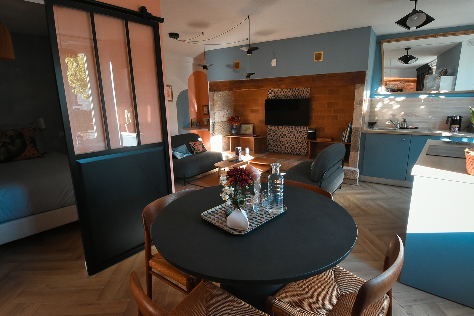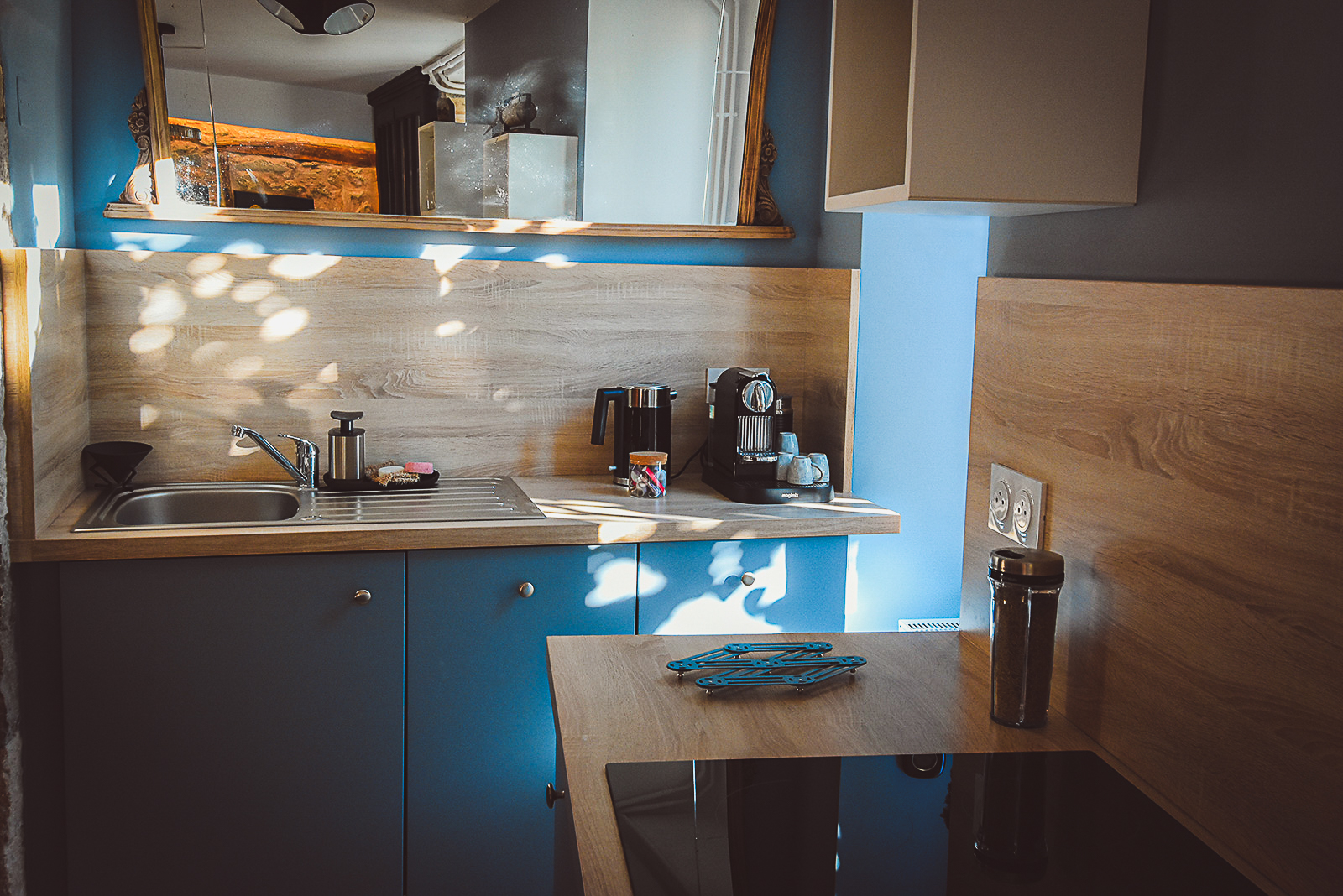 Vous trouverez une pièce principale avec : un coin cuisine tout équipé (four micro-onde combiné, frigo, plaque à induction),une table à manger pour 4 personnes, un salon avec TV Google Chromecast et enceinte Bluetooth, un bureau flex office avec accès à la fibre et une imprimante, scanner, copieur à la demande. Chambre 1 : accéder à un espace cocon de 6m², une chambre indépendante avec un lit en 160×200 Queen Size équipé d’une literie prestige une référence des hôtels 4 étoiles et des draps en percale de coton BIO. Chambre 2 : un espace esprit cabane de 10m² équipé de lits superposés pour petit et grand de 90×200 où vous pourrez vous y réfugier pour une sieste ou une nuit reposante. Une salle d’eau avec douche à l’italienne de 1,6 x 0,8 m et un toilette indépendant. Produits de bain BIO, sèche cheveux, sèche serviette, linge de bain en coton BIO.