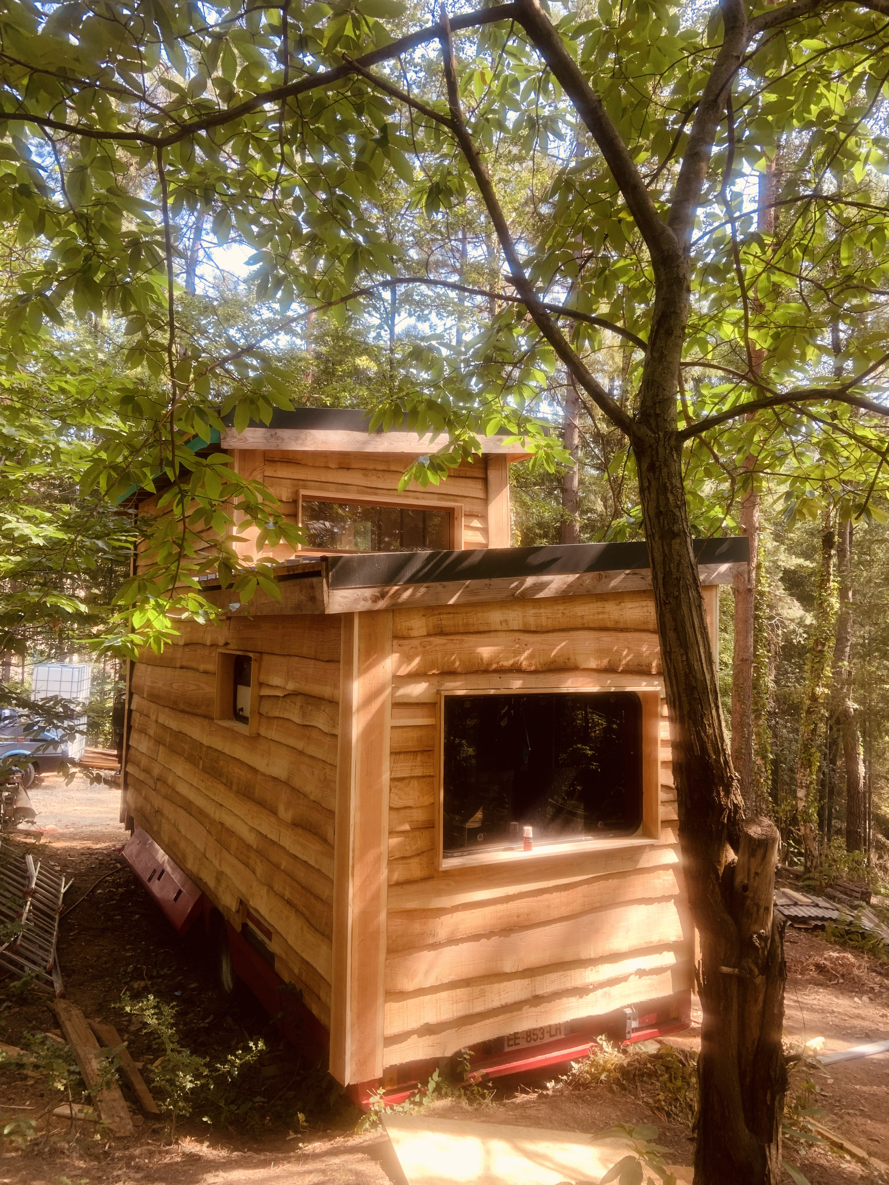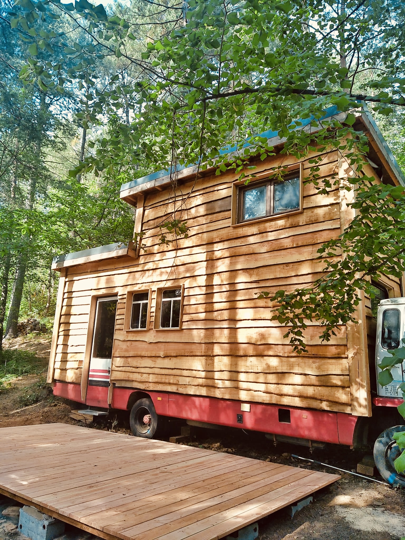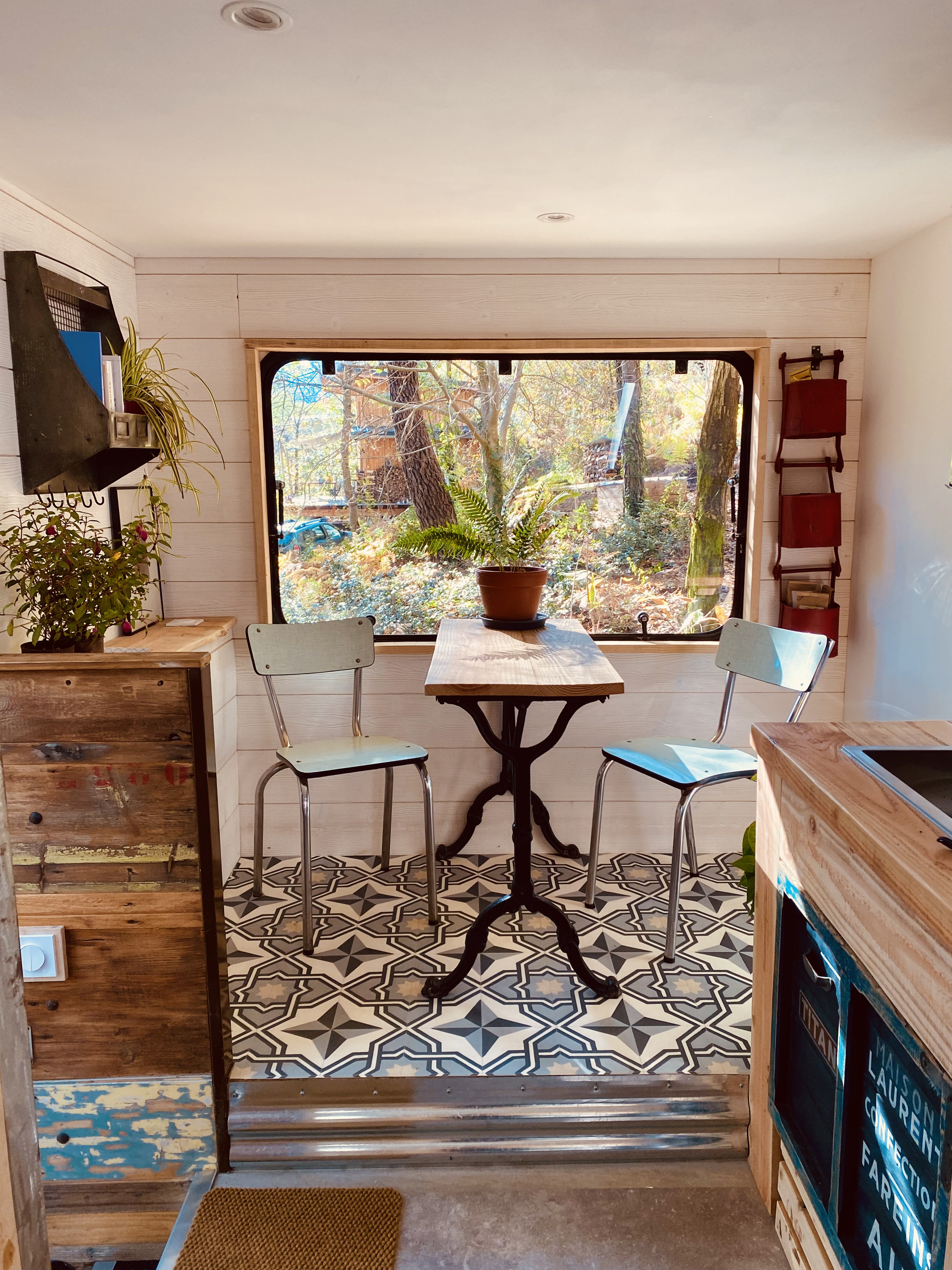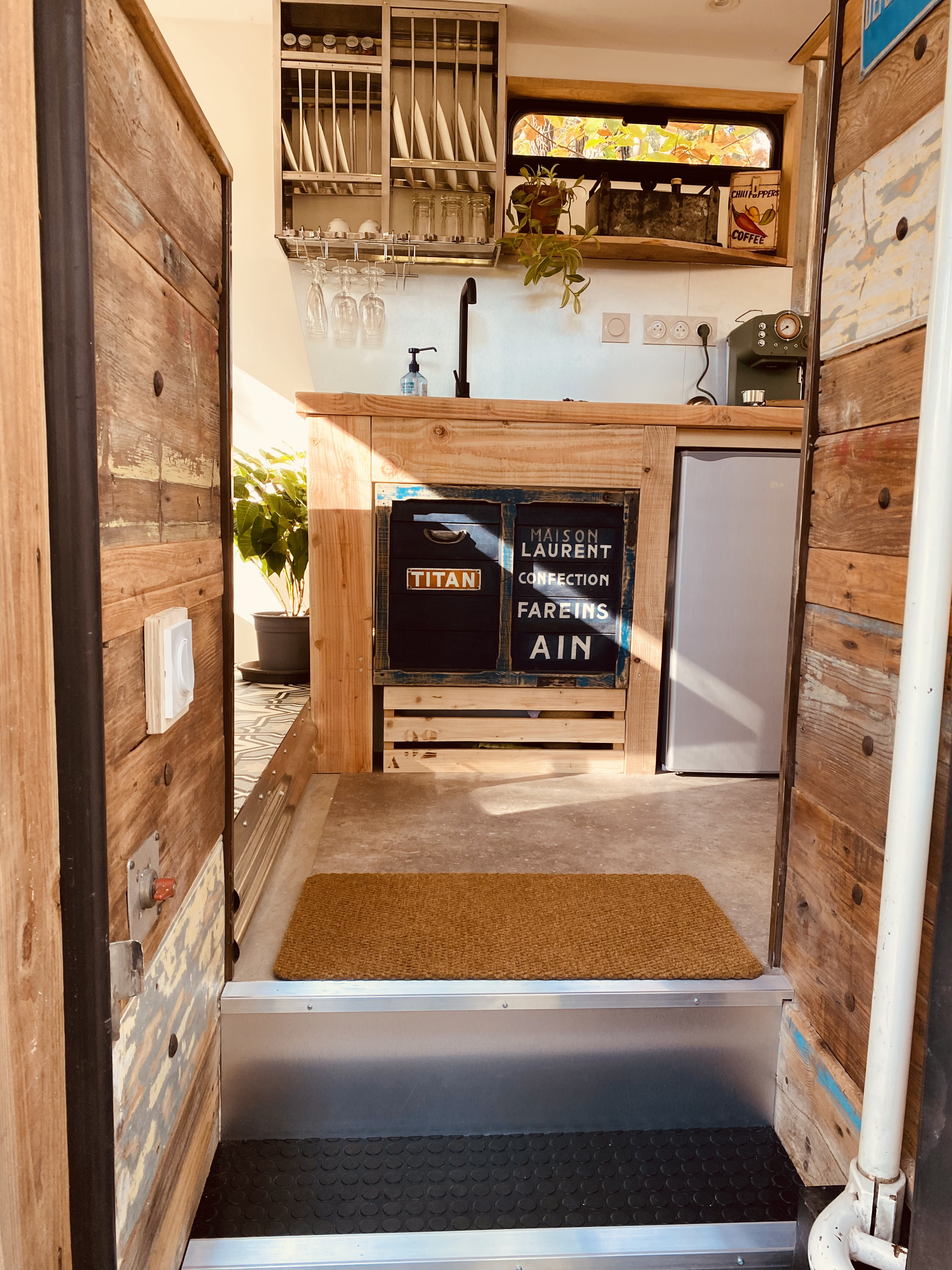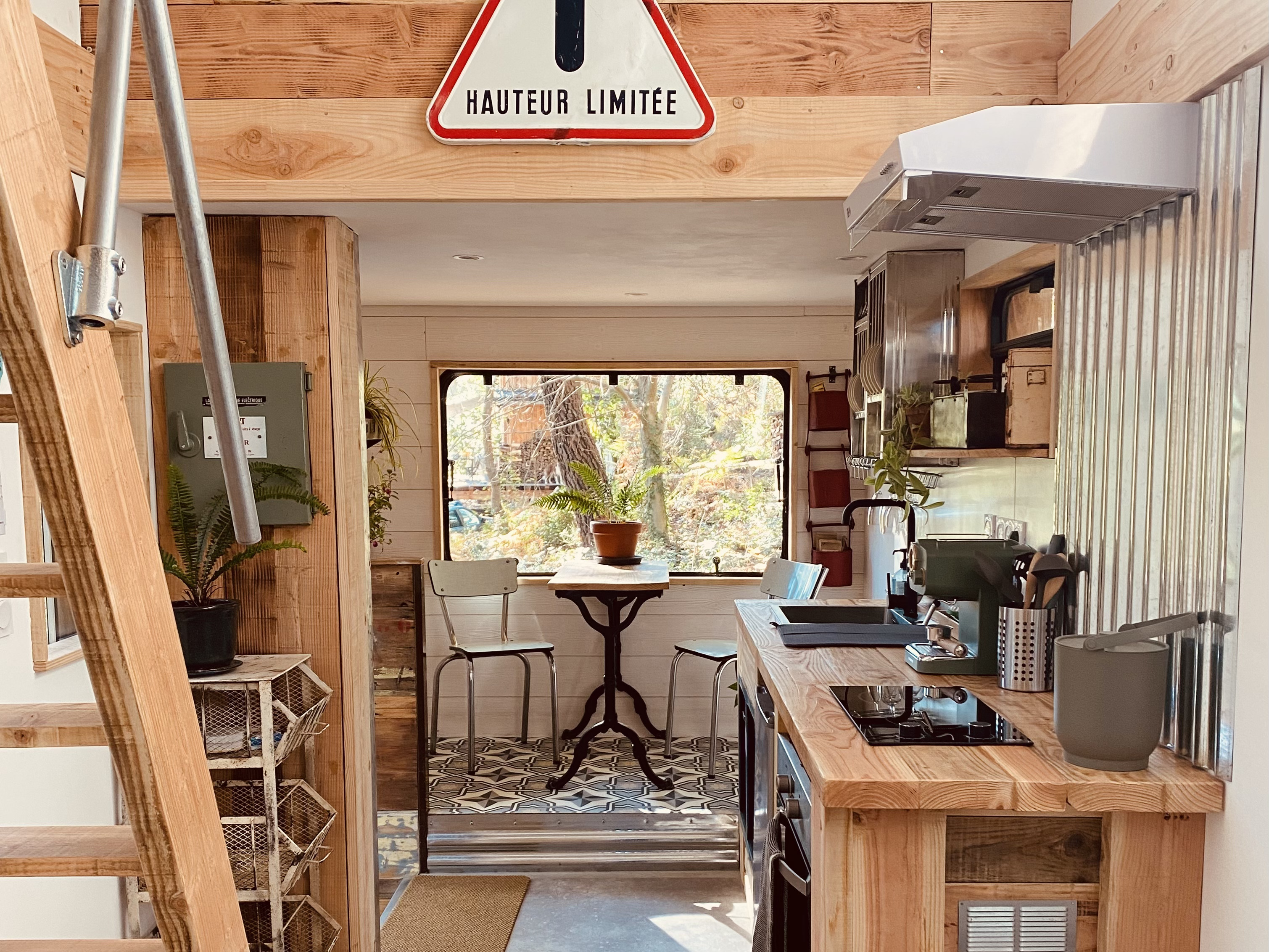 Venez passer une nuit atypique dans le Cabion, cette “Tiny House” aménagée avec originalité et dans un style industriel ! Cet ancien bibliobus a été rehaussé d’une mezzanine et transformé en cabane dans un esprit éco-responsable : utilisation du bois (Douglas) de notre forêt et un maximum de seconde main. Le mobilier et les aménagements sont construits et décorés avec soin, générosité et sobriété pour une ambiance chaleureuse et authentique. Le lit double perché offre une vue imprenable sur les arbres, tandis que le ventilateur de plafond et le poêle à bois assurent un confort optimal quelle que soit la saison. Un séjour placé sous le signe du bien-être, du partage et du respect de la nature vous attend dans ce cocon insolite en pleine forêt.