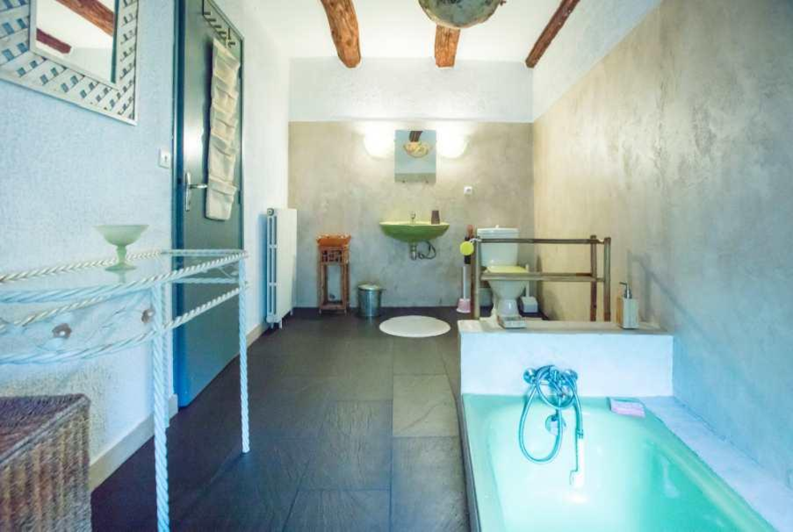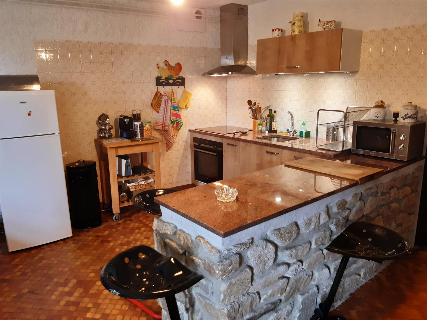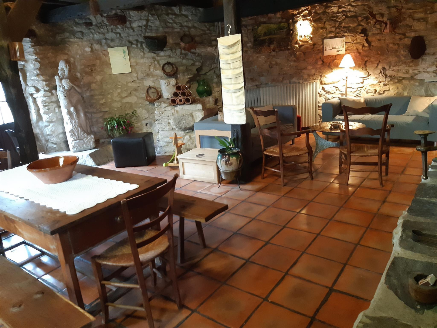 Maison traditionnelle de la montagne tarnaise, terrasse, petit jardin et parking privé. Au rez-de-chaussée: grande cuisine, wc , vaste séjour avec cheminée. A l’étage : deux chambres, salle de bain, wc. Chauffage central fuel en supplément. Draps, linge de maison et de toilette fournis inclus dans le tarif. Un lit supplémentaire sur la mezzanine menant aux chambres.