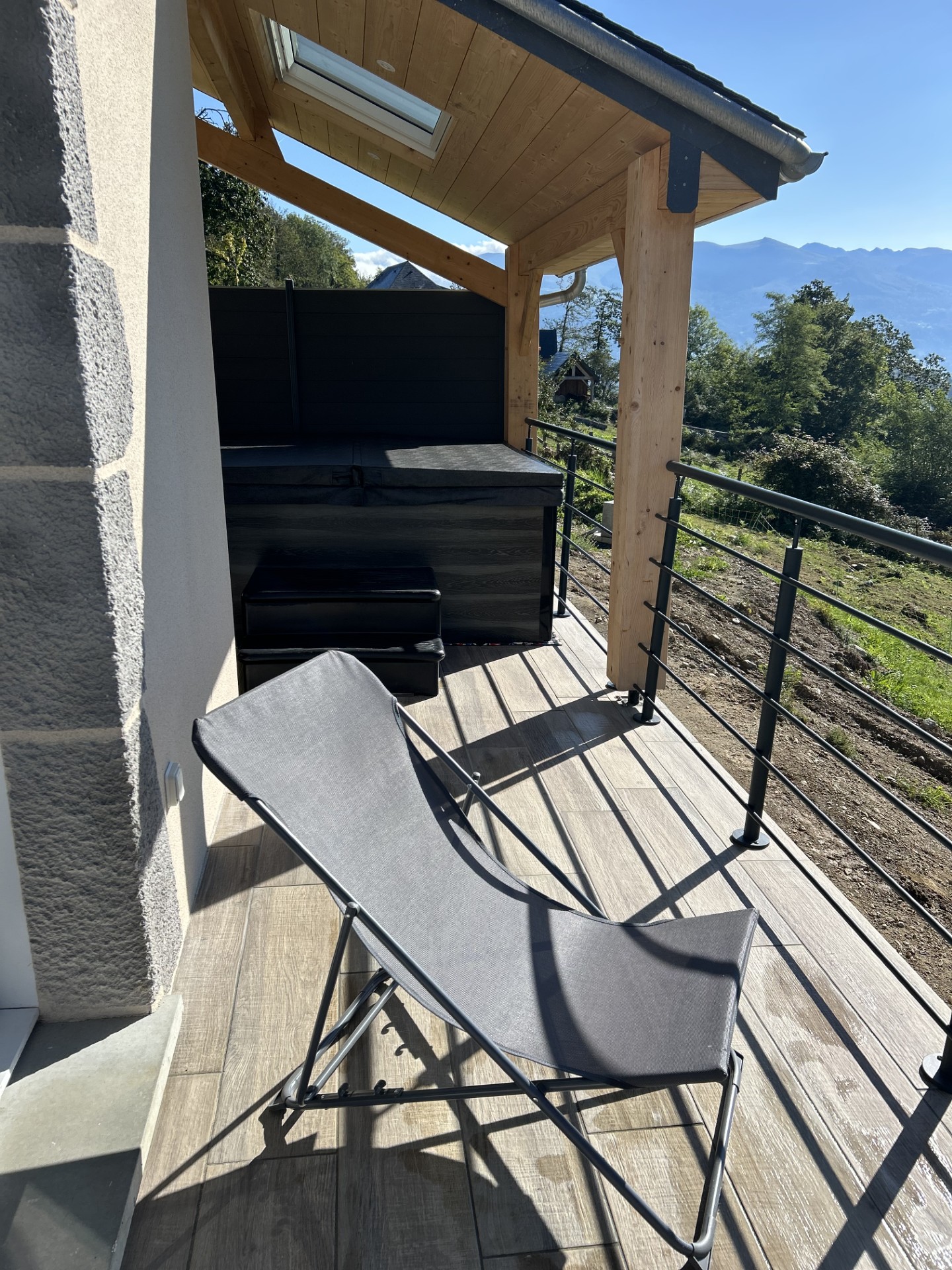 Gîte de 47 m2 comprenant : – Une cuisine ouverte avec vue imprenable sur le Pic du Midi de Bigorre, le Cabaliros, la val d’Azun et les crêtes du Hautacam, – Deux chambres avec un lit en 160 et une chambre modulable avec un lit en 180 ou 2 lits en 90, – Une salle d’eau (douche), un wc indépendant. – Une mezzanine équipée d’un filet au dessus du séjour et un coin détente pour les enfants (coin lecture, jeux…). La location bénéficie d’une terrasse (plancha et salon d’extérieur, des transats et un spa), d’un parking privé et d’un local pour vos vélos et matériel de ski.