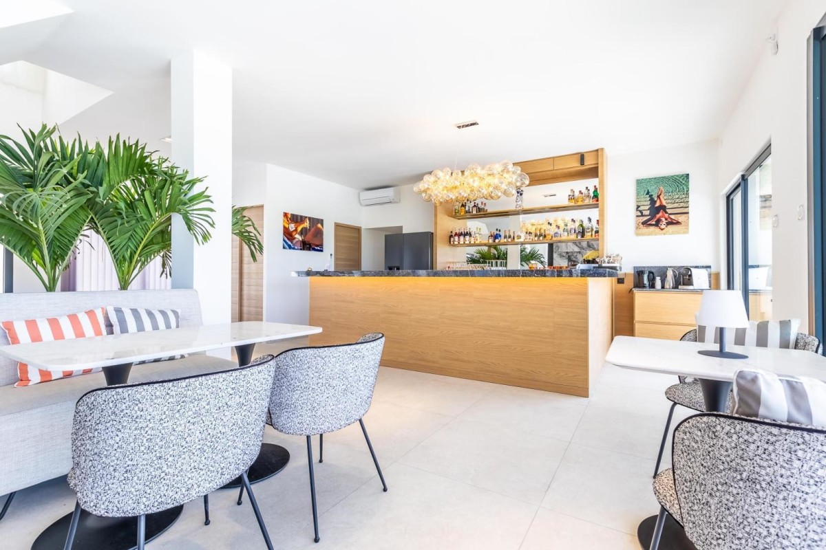 Idéale pour passer des vacances uniques dans l’Hérault, dans le charmant village de Plaissan, venez séjournez à deux, dans une des quatre chambres ou suites décorées avec soin et très bien équipées, dans la villa SCL (Sunset Chill Lounge), une villa de luxe, dans le calme, la sérénité et le confort, le tout dans un cadre d’exception ! Vous pourrez également profiter d’un petit-déjeuner continental de qualité. Aux alentours, profitez du Lac du Salagou qui offre des activités nautiques et des randonnées au milieu d’un paysage unique. Ne manquez pas non plus de visiter le célèbre village de Saint-Guilhem-le-Désert, classé parmi les plus beaux villages de France, et de faire une randonnée sur ses célèbres sentiers escarpés. Visitez également le village médiéval de Pézenas, avec son superbe centre historique et ses boutiques et ateliers d’artisanat. La villa dispose en pièces communes de : A l’intérieur : – Une pièce de vie avec salon spacieux avec télévision, salle à manger lumineuse, et cuisine entièrement équipée (four, micro-ondes, réfrigérateur et congélateur, machine à café…) ; – Une buanderie équipée pour plus de commodité. A l’extérieur : – Piscine miroir commune chauffée de mi-mai à mi-septembre, avec ses bains de soleil ; – Jacuzzi – Une grande terrasse avec salon de jardin ; – Un jardin composé de palmiers, bananiers, cannes à sucre,… apaisant pour profiter du soleil de l’Hérault ! Vous pourrez vous garer de façon privative à l’intérieur de la propriété. – Située au rez-de-chaussée, cette chambre dispose d’un lit double 160×200 cm avec une télévision connectée, d’un dressing, ainsi que d’une salle d’eau avec une grande douche, une vasque avec miroir et un WC privatif. La chambre donne un accès privatif à la cuisine d’été extérieure située à côté de la chambre et de la terrasse.
