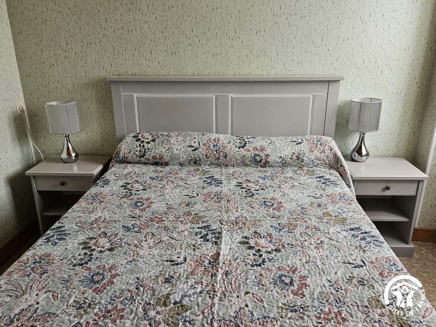 Espace repos indépendant: 3 chambres dont deux avec un lit double de 140x190cm équipées d’un placard et une avec 2 lits simples de 90x190cm et une armoire; 1 salle d’eau; 1WC.