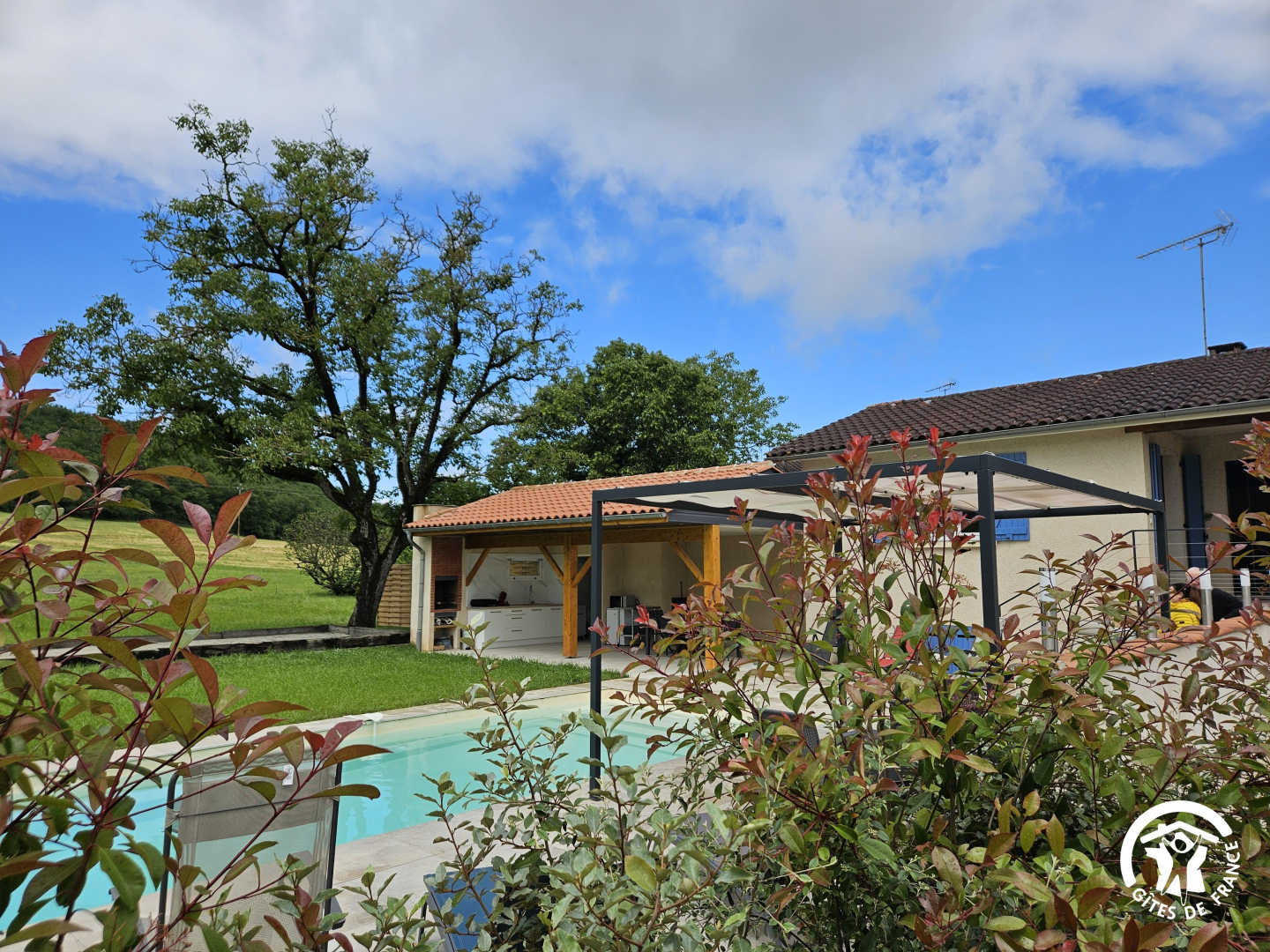 À l’extérieur, tout est pensé pour profiter du calme de la campagne : piscine privative 8,5×3,8 m, terrain de pétanque, table de ping-pong, terrasse spacieuse de 65 m² avec pergola, ainsi qu’un pool house de 40 m² comprenant un salon, une cuisine d’appoint, une salle d’eau et des WC. Barbecue, plancha, évier, réfrigérateur et micro-ondes sont à votre disposition pour vos repas d’été. La cour privée de 150 m² et le garage de 40 m² complètent les aménagements.