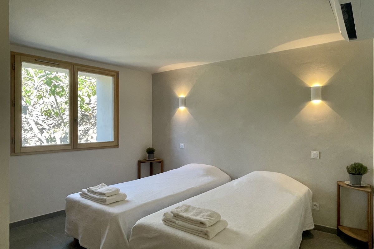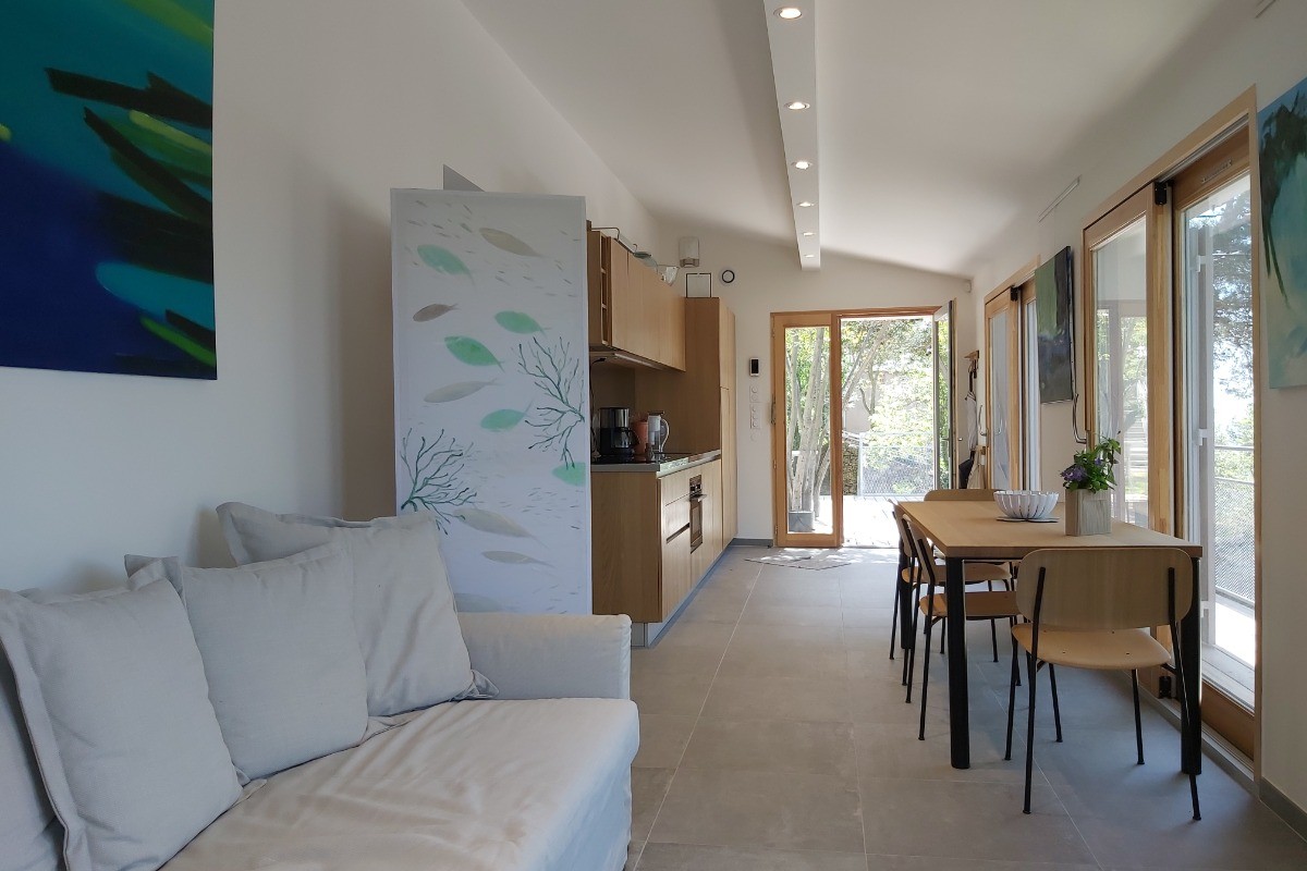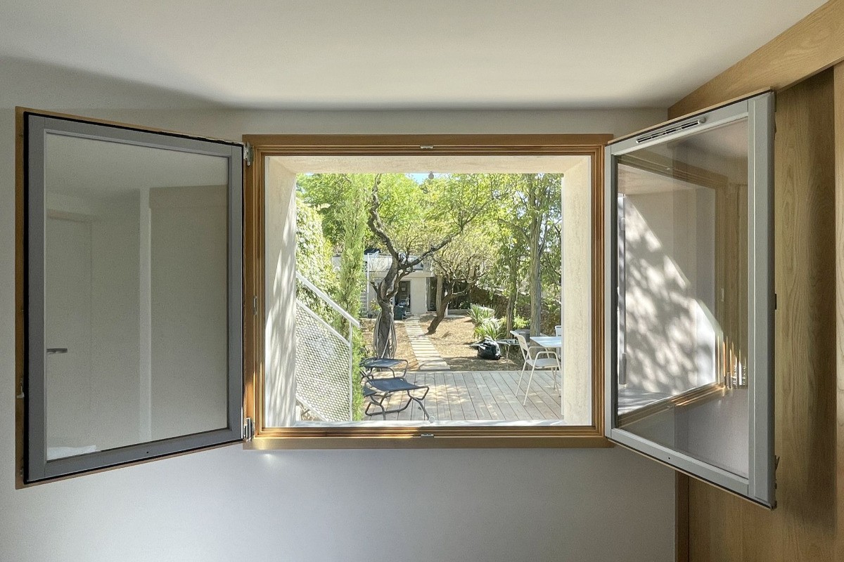 Artist house fully renovated in 2021 Great comfort and absolute quiet Green area on the Mount Saint-Clair (south) Sea and lagoon view 3 rooms (60 m2) 1 main room (kitchen/dining and living room) 1 bedroom with double bed 160 * 200 cm 1 bedroom with 2 single bed 90 * 200 cm Shower room with italian shower Separate WC Ecological materials for a good healthcare Premium furniture and equipments (solid wood interior furniture, garden furniture, bedding, fitting, white goods and plancha) Air conditioning Shaded wooden terrace (60 m2) Flat and wooded garden (800 m2) with a petanque court (petanque bowls at your disposal) Closed and private car place with electrical charging station.