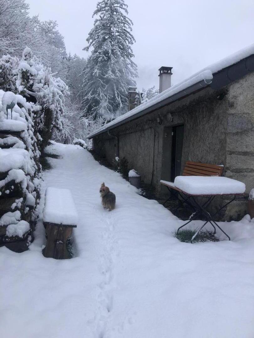 Le gîte comprend une pièce à vivre avec cuisine ouverte bien équipée (cuisinière avec four, cuisinière à bois, cafetière filtre et Senséo, bouilloire), coin repas et salon sans télévision — un choix assumé pour favoriser le calme. Dans le prolongement, la chambre avec lit en 160×200, donne accès à une salle d’eau avec douche à l’italienne. WC séparé.