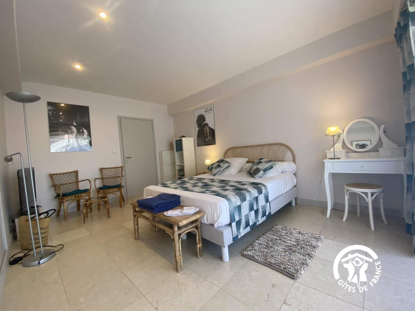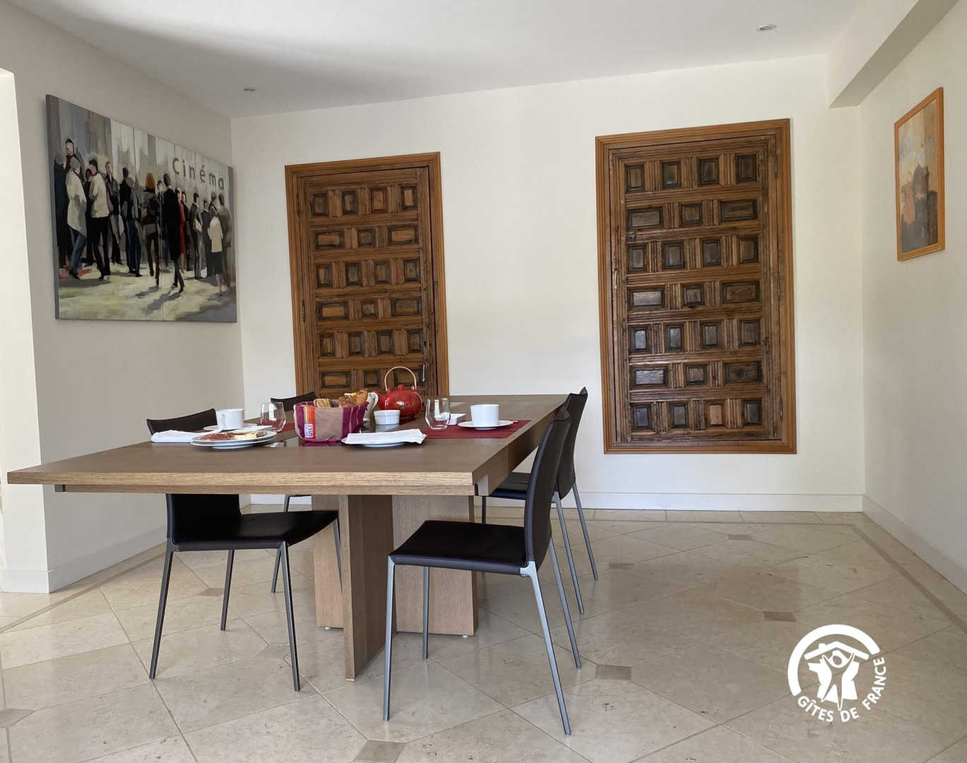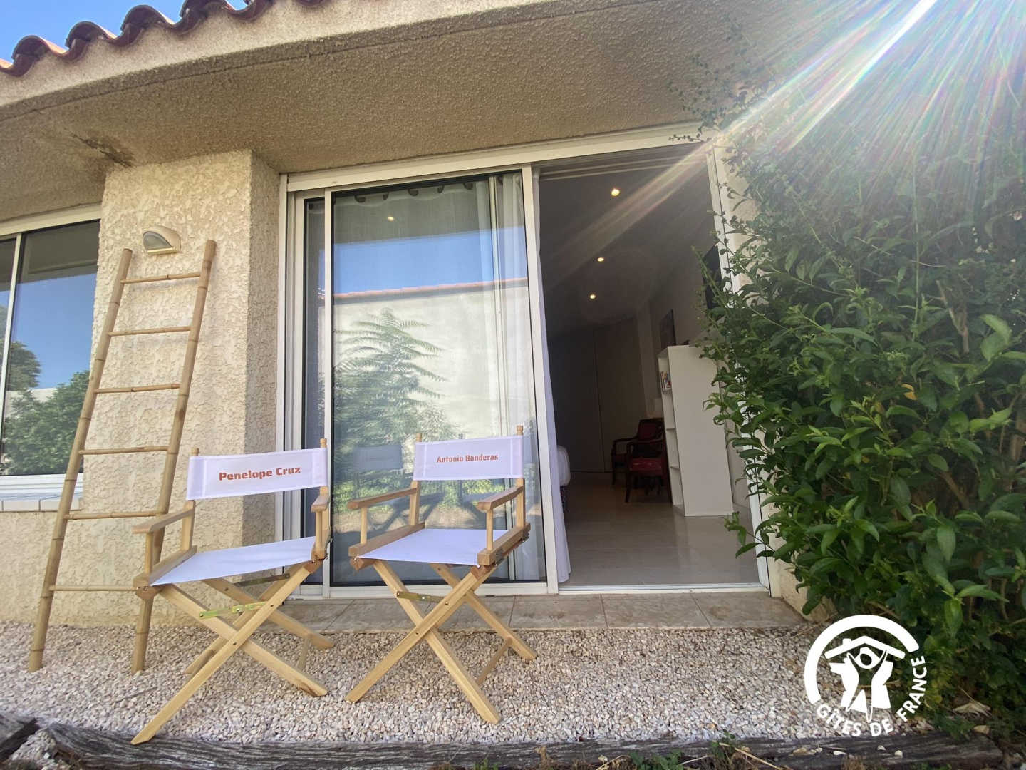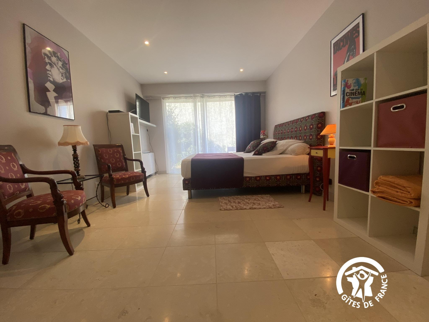 Toutuncinémer, maison d’hôtes, inspire le calme, la quiétude, la sérénité. Au gré de vos envies, vous pourrez vous prélasser dans le jardin clos arboré et fleuri, au bord de la piscine (12,5×6,5×1,80 m) sécurisée par une alarme, et accessible de 10h à 20h, du 1er juin au 15 octobre, à l’ombre des arbres, ou encore, par beau temps prendre votre petit-déjeuner copieux sur la terrasse ou bien dans la salle à manger. Avec son entrée indépendante, chacune des deux chambres d’hôtes climatisées est de plain-pied, personnalisée avec goût sur le thème du cinéma, où des clins d’œil à Pedro Almodovar ou Clint Eastwood vous attendent ! Cendrine, passionnée de cinéma, met également à votre disposition des ouvrages et DVD de ces deux réalisateurs. Elle parle la Langue des Signes Française (niveau A2). Parking privatif clos sur place pour 2 voitures.