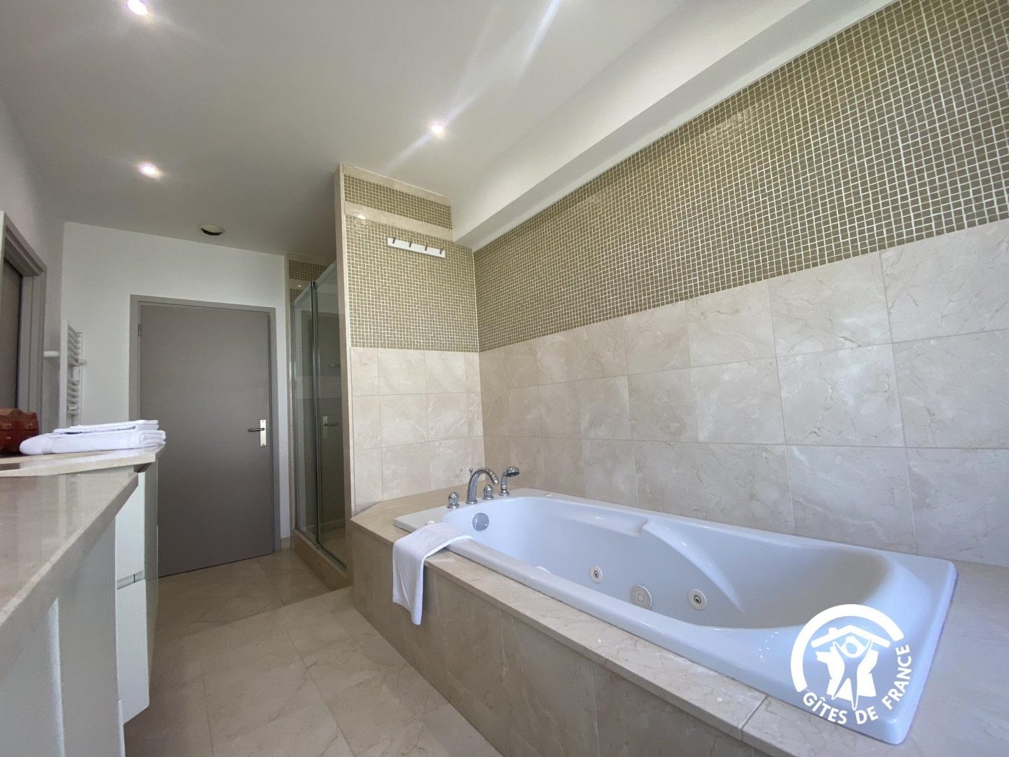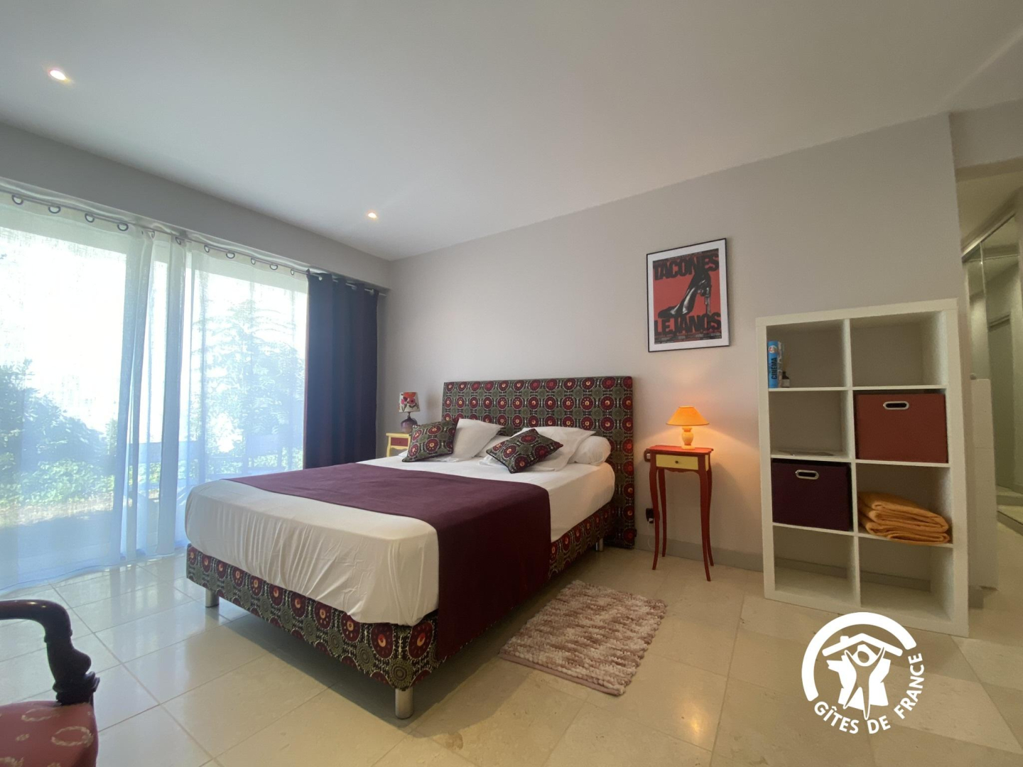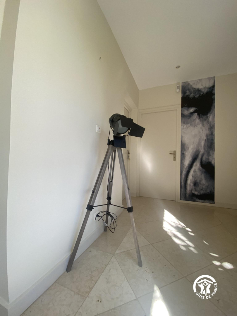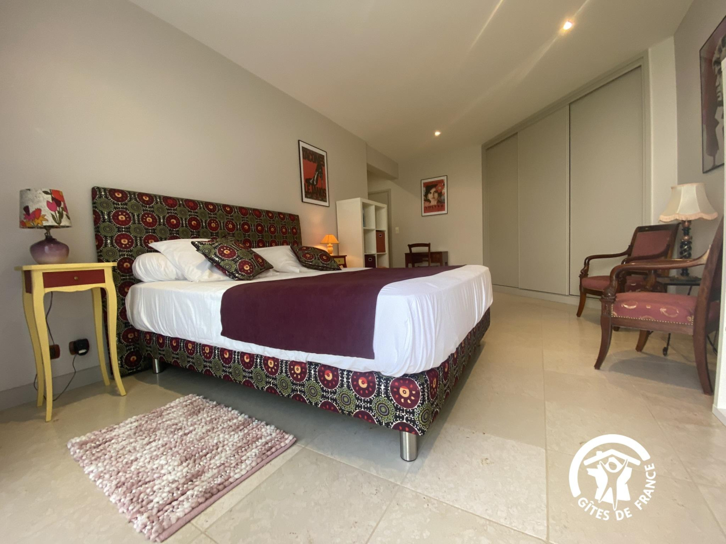 Toutuncinémer, maison d’hôtes, inspire le calme, la quiétude, la sérénité. Au gré de vos envies, vous pourrez vous prélasser dans le jardin clos arboré et fleuri, au bord de la piscine (12,5×6,5×1,80 m) sécurisée par une alarme, et accessible de 10h à 20h, du 1er juin au 15 octobre, à l’ombre des arbres, ou encore, par beau temps prendre votre petit-déjeuner copieux sur la terrasse ou bien dans la salle à manger. Avec son entrée indépendante, chacune des deux chambres d’hôtes climatisées est de plain-pied, personnalisée avec goût sur le thème du cinéma, où des clins d’œil à Pedro Almodovar ou Clint Eastwood vous attendent ! Cendrine, passionnée de cinéma, met également à votre disposition des ouvrages et DVD de ces deux réalisateurs. Elle parle la Langue des Signes Française (niveau A2). Parking privatif clos sur place pour 2 voitures.