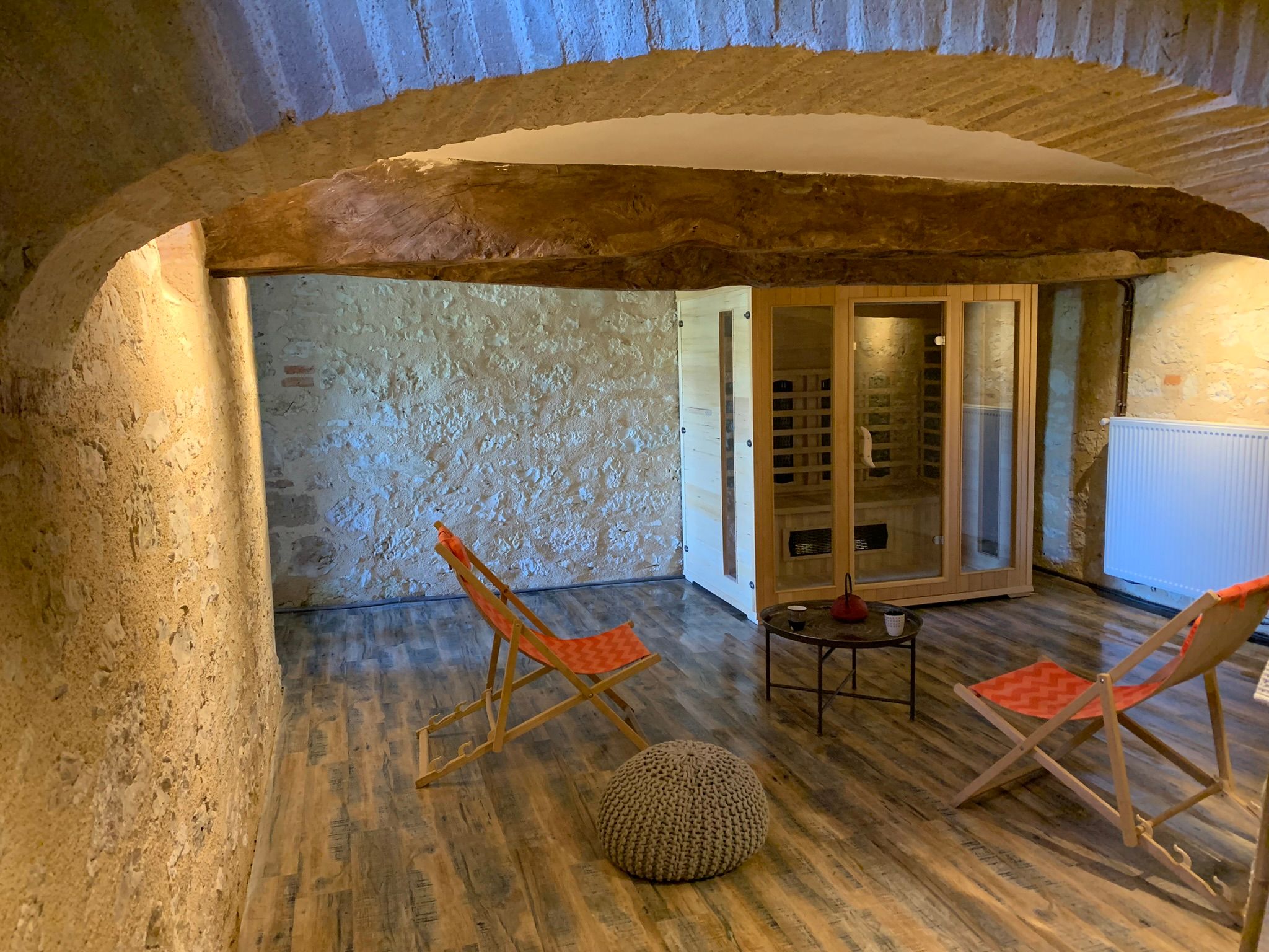 En el sótano, antigua bodega con spa.