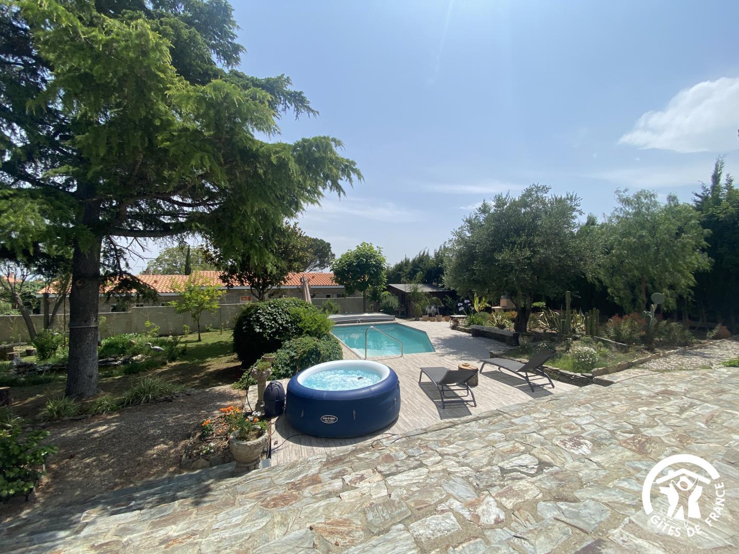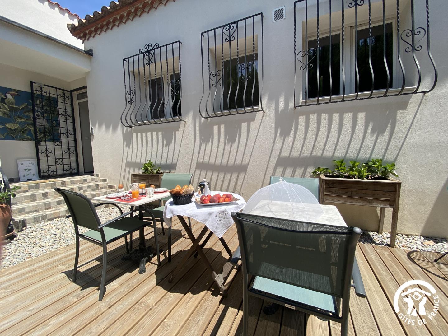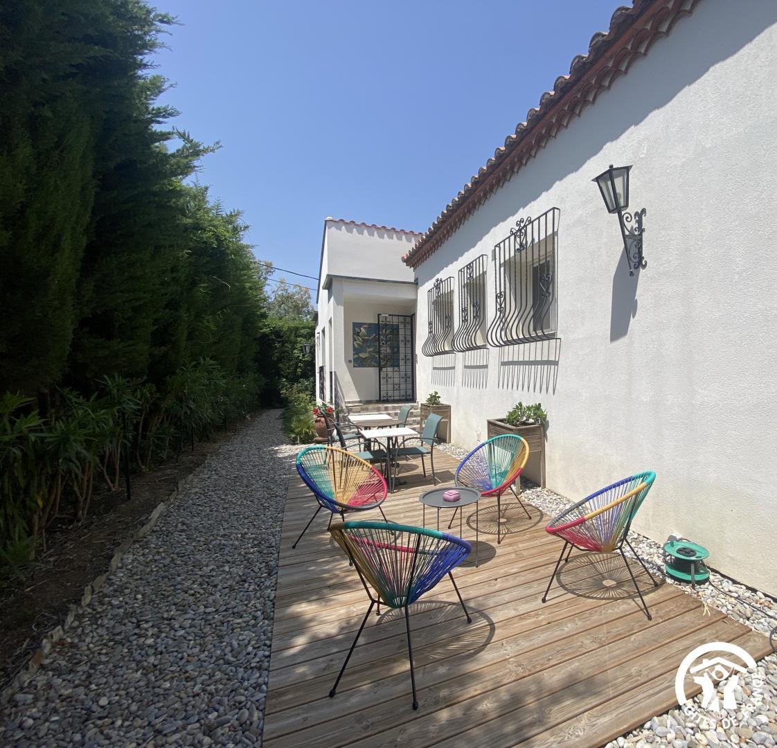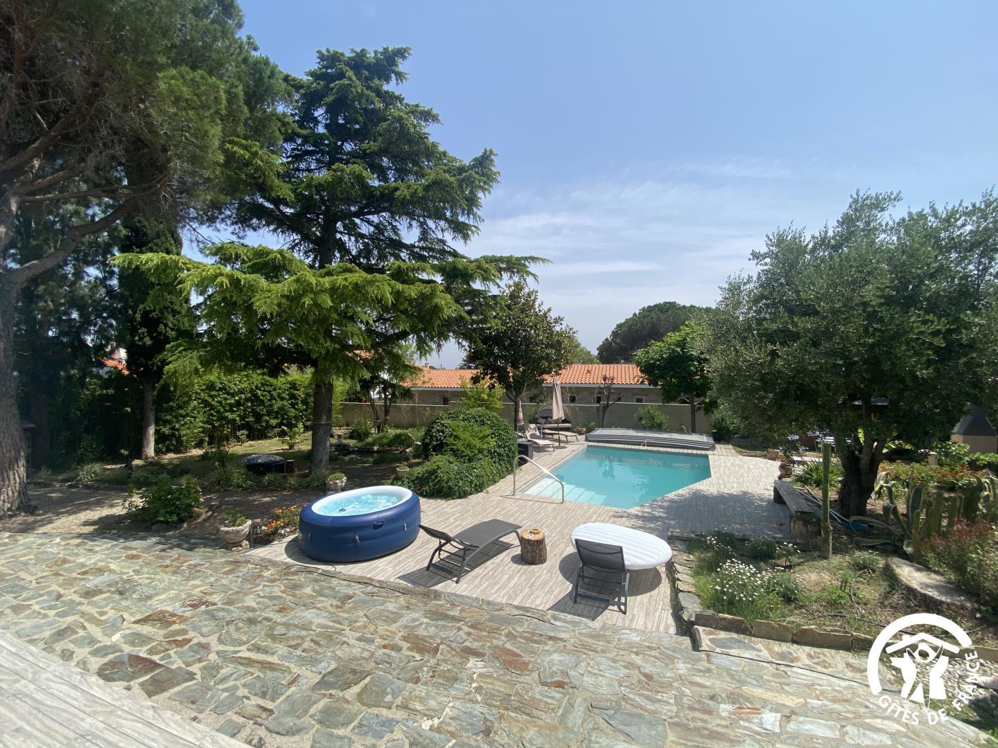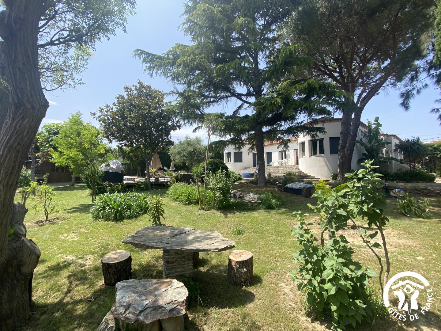 En las afueras de Le Soler, en una encantadora urbanización, esta hermosa villa de los años 60 le da la bienvenida en el corazón de una propiedad de 1500 m² plantada de árboles y flores, totalmente vallada, con un estanque de peces. De junio a septiembre, disfrute de una piscina compartida (4 x 7 m, 1,80 m de profundidad), abierta de 9 a 19 h, y de un spa hinchable exterior para 4 personas. El acceso a las dos habitaciones independientes se realiza a través de un vestíbulo común. Una terraza con muebles de jardín está a su disposición. El desayuno se sirve en la terraza o en el salón de los propietarios, según el tiempo. Si reserva directamente con los propietarios (10 €/hora), podrá utilizar la zona de bienestar del sótano (spa, sauna, hammam). Hay una plaza de aparcamiento por habitación en la propiedad.