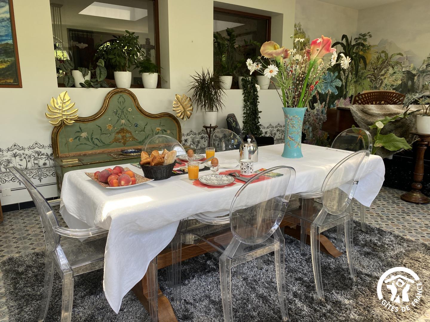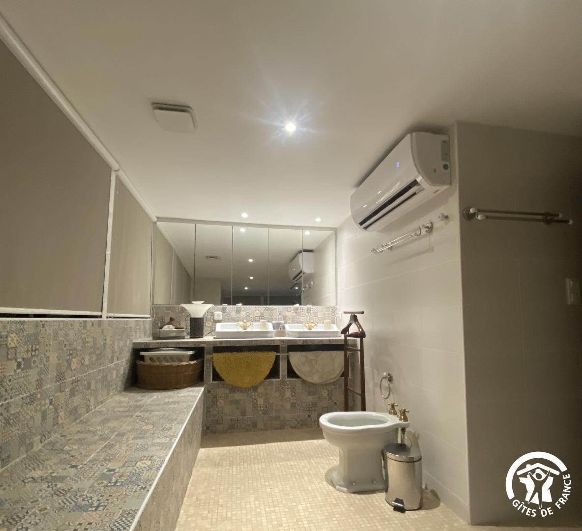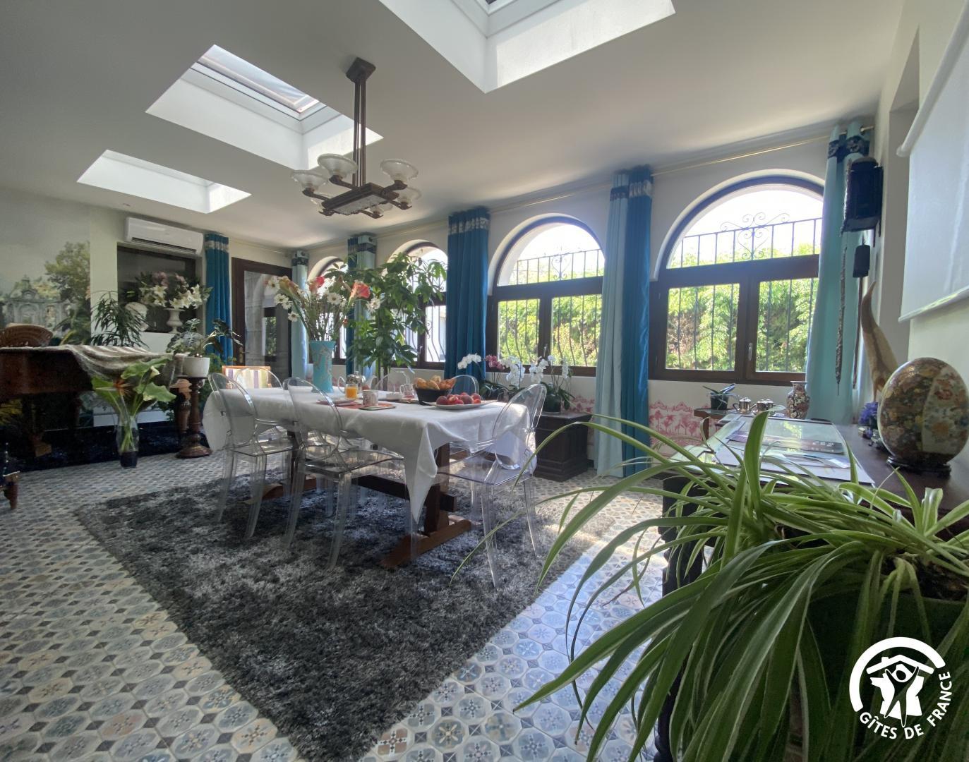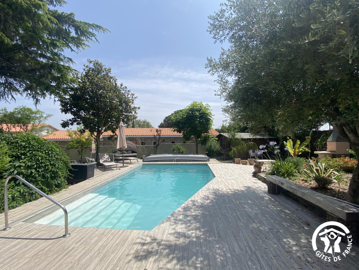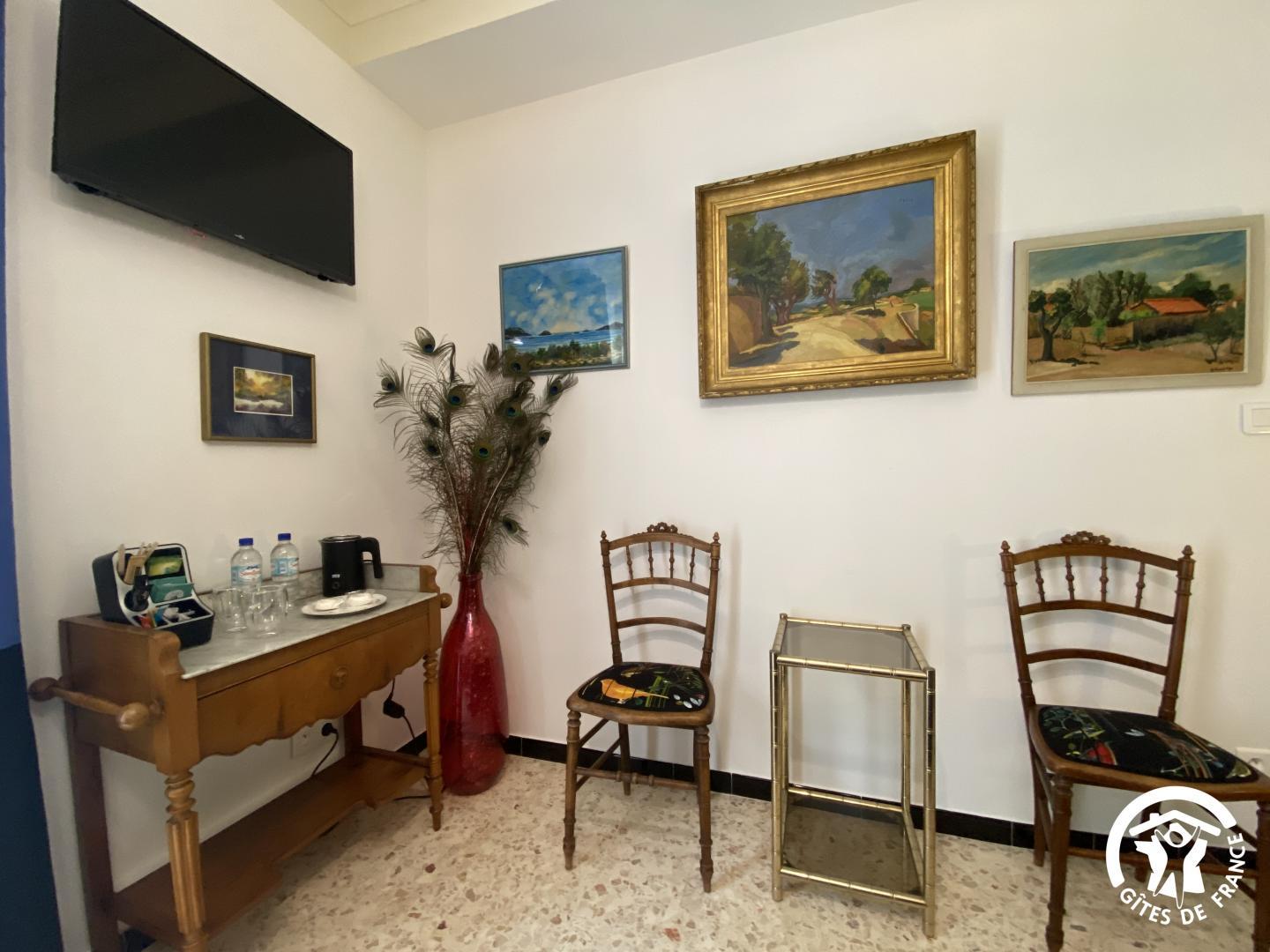 En las afueras de Le Soler, en una encantadora urbanización, esta hermosa villa de los años 60 le da la bienvenida en el corazón de una propiedad de 1500 m² plantada de árboles y flores, totalmente vallada, con un estanque de peces. De junio a septiembre, disfrute de una piscina compartida (4 x 7 m, 1,80 m de profundidad), abierta de 9 a 19 h, y de un spa hinchable exterior para 4 personas. El acceso a las dos habitaciones independientes se realiza a través de un vestíbulo común. Una terraza con muebles de jardín está a su disposición. El desayuno se sirve en la terraza o en el salón de los propietarios, según el tiempo. Si reserva directamente con los propietarios (10 €/hora), podrá utilizar la zona de bienestar del sótano (spa, sauna, hammam). Hay una plaza de aparcamiento por habitación en la propiedad.