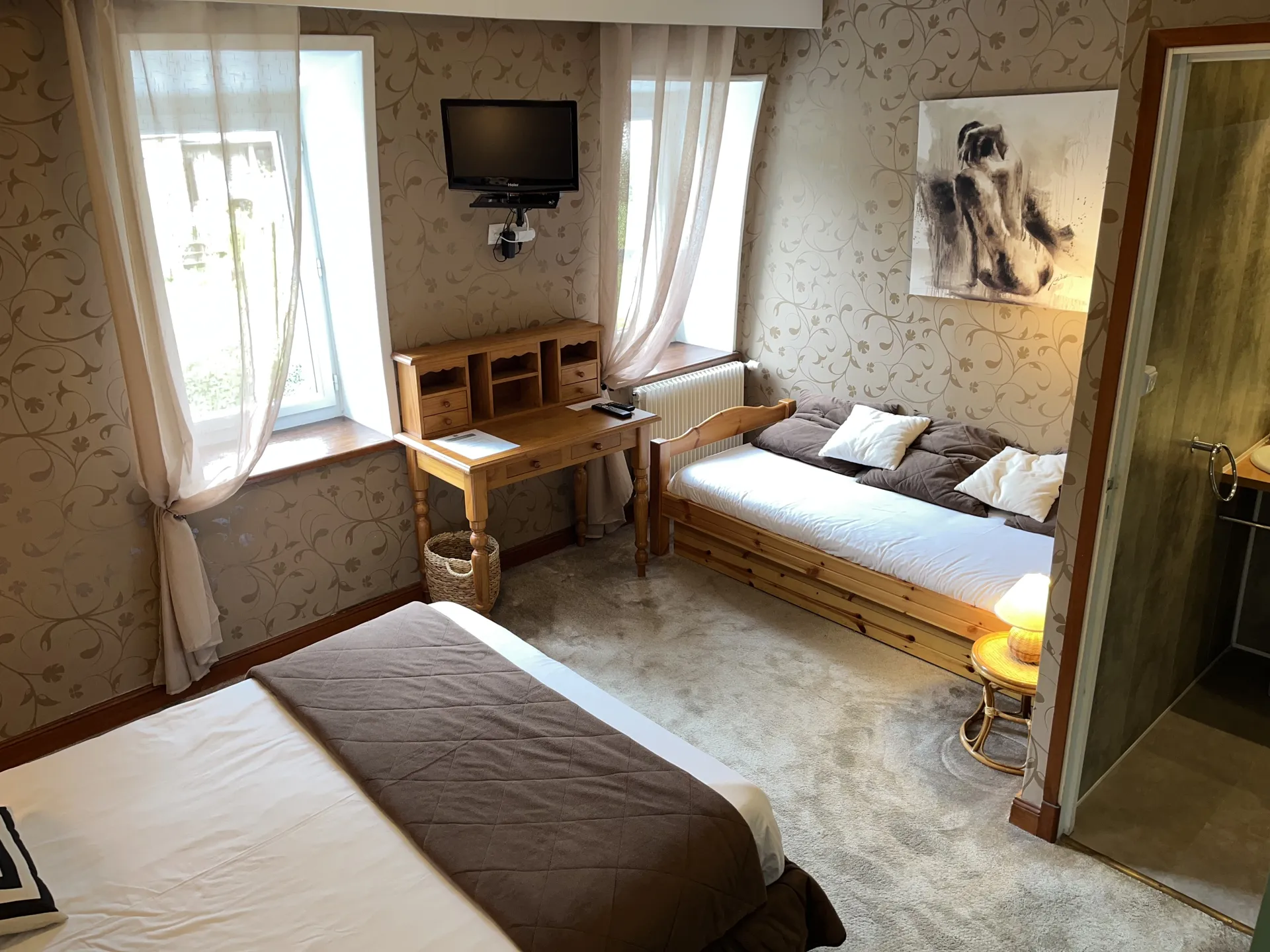 En función de la hora y de la estación, se sirven los cafés y digestivos al lado de la chimenea o en el jardín. El establecimiento dispone de 14 habitaciones con encanto (equipadas con cuartos de baño o ducha, WC, teléfono directo o televisión), todas son personalizadas y dan al jardín o al pueblo de Estaing.