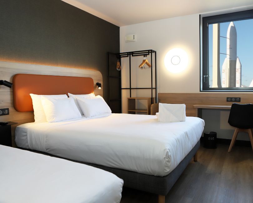 Su hotel Campanile PRIME le ofrece un entorno decididamente moderno y confortable. Todas nuestras habitaciones fueron renovadas a finales de 2024, combinando diseño y funcionalidad y ofreciendo ropa de cama de alta gama. Los cuartos de baño son elegantes y agradables, con una mezcla de madera, luz y claridad. Si le apetece hacer algo de ejercicio, tiene un gimnasio a su disposición.